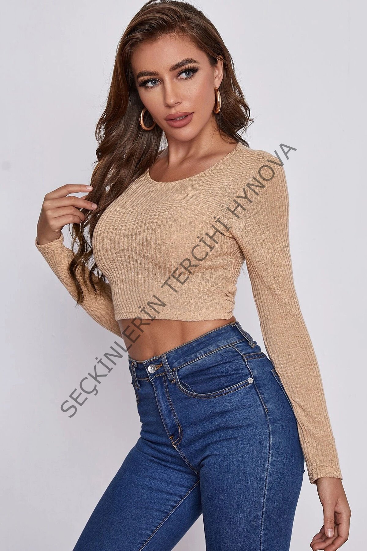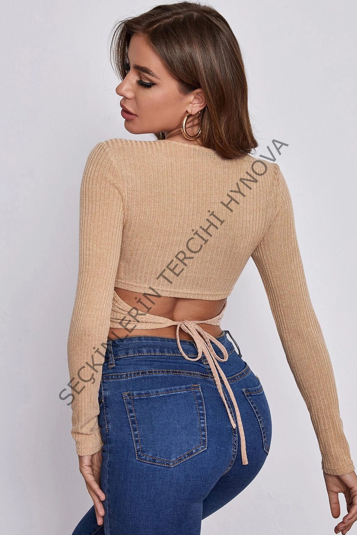 Kadın Krem Uzun Kollu Arkadan Bağlamalı Bluz – Şık, Rahat ve Kolay Kombinlenebilir