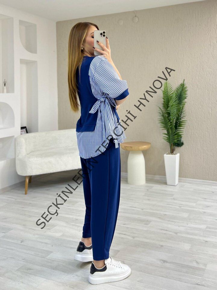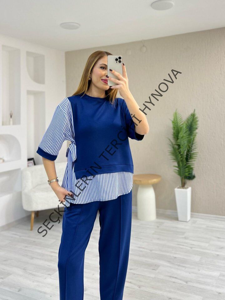 Kadın Kristal 2 Iplik Kumaş Yanları çizgili Takım