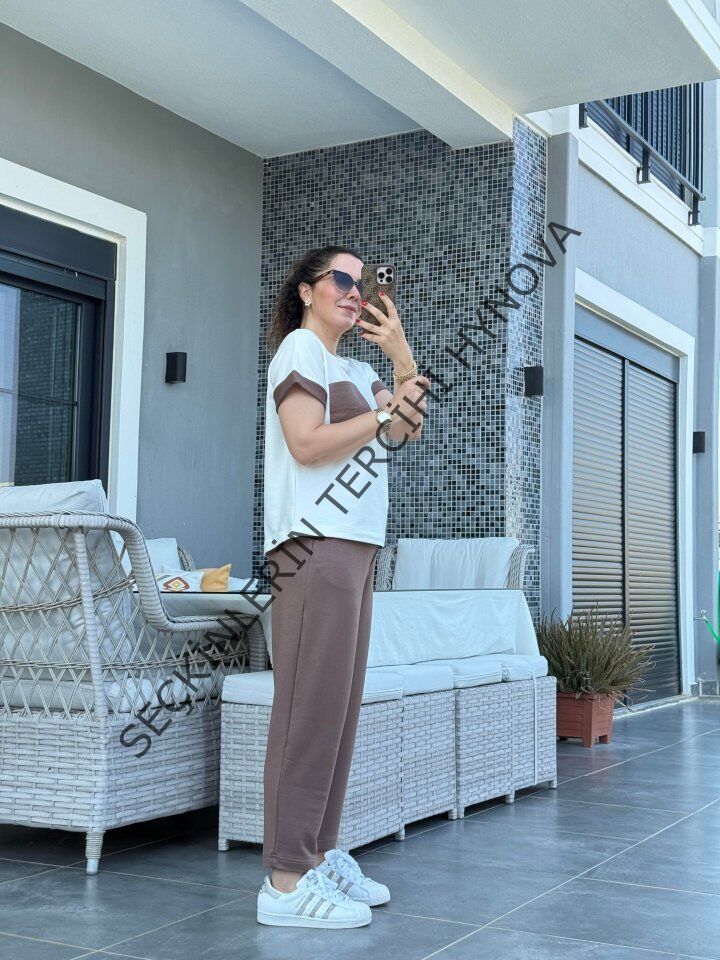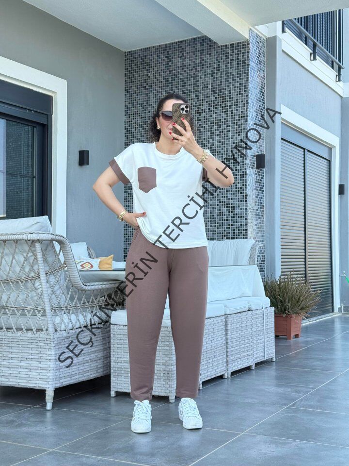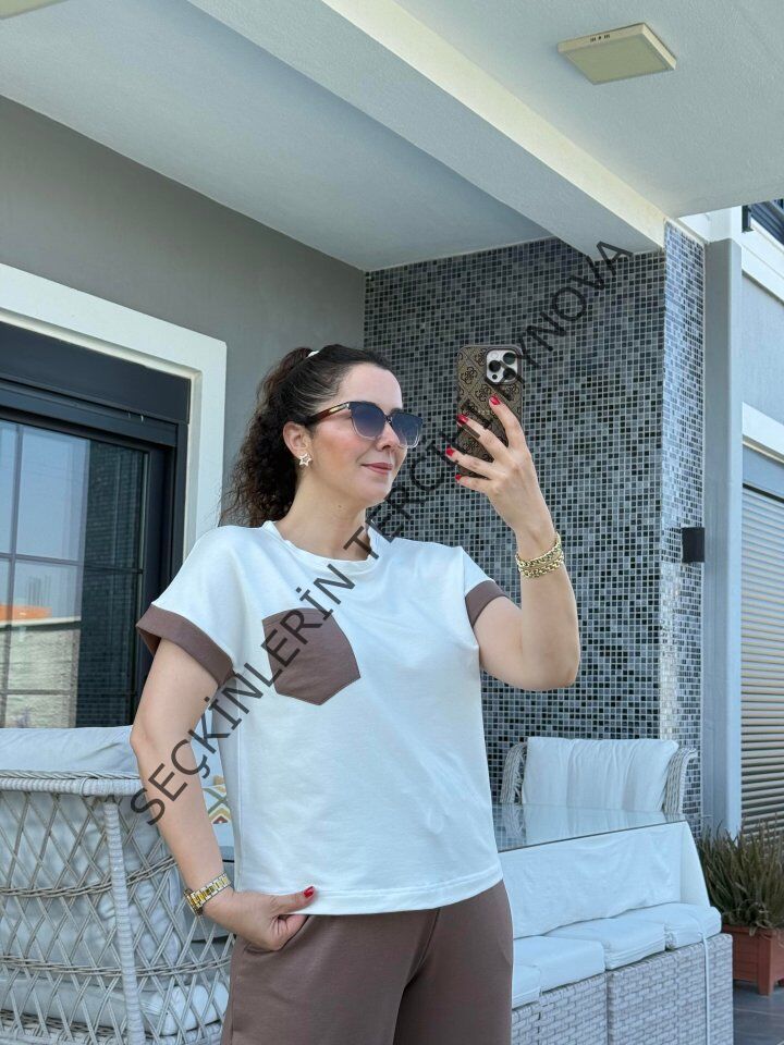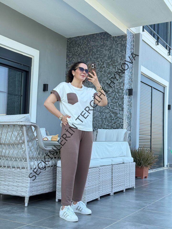 Kadın Kristal Kumaş Garnili Cep Detaylı Ikili Takım