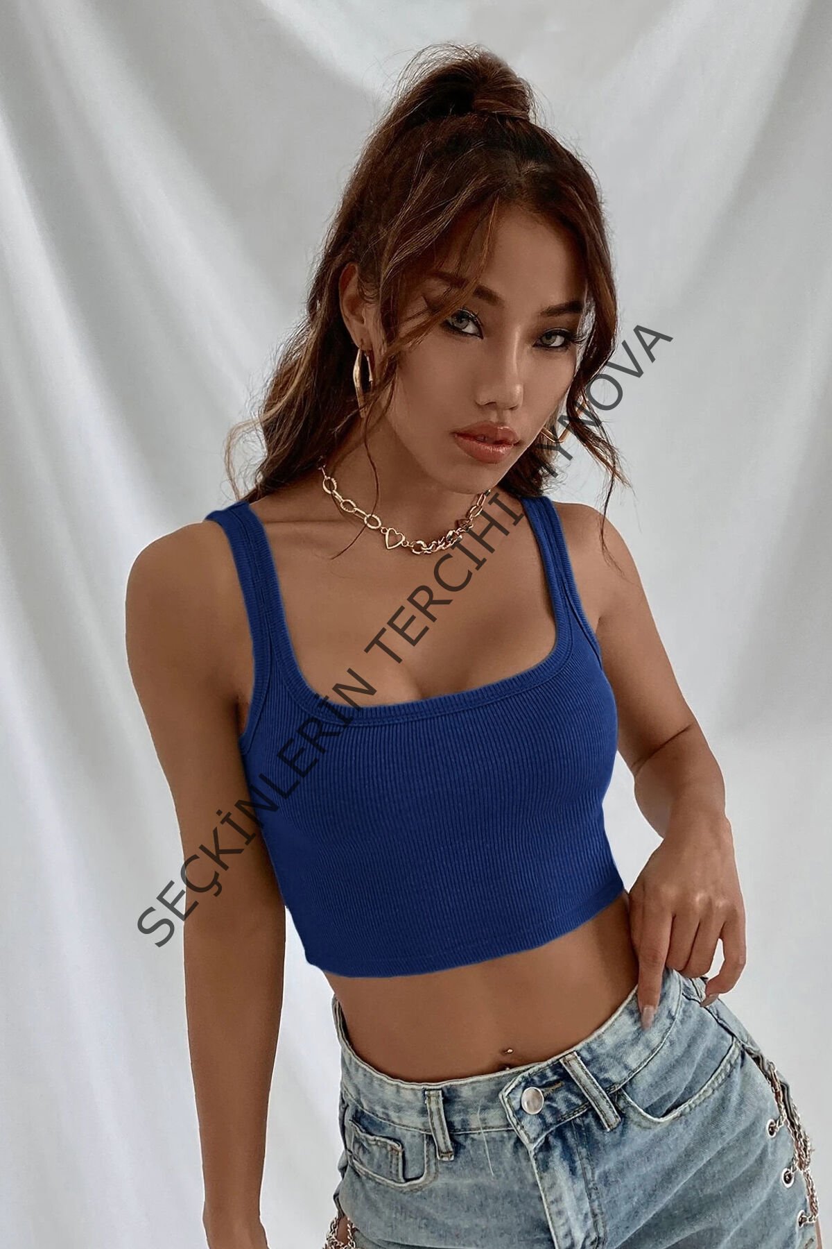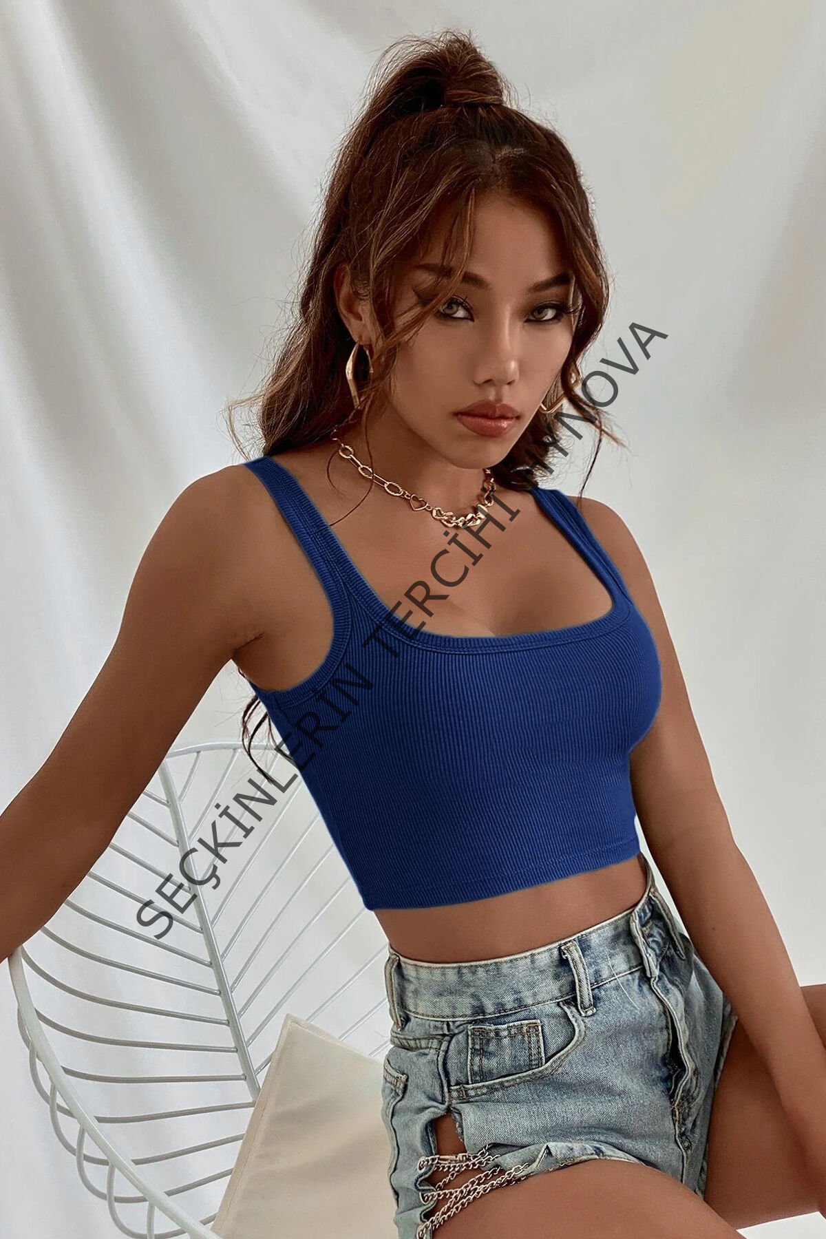 Kadın Lacivert Kalın Askılı Crop Top Büstiyer – Modern ve Şık Tasarım