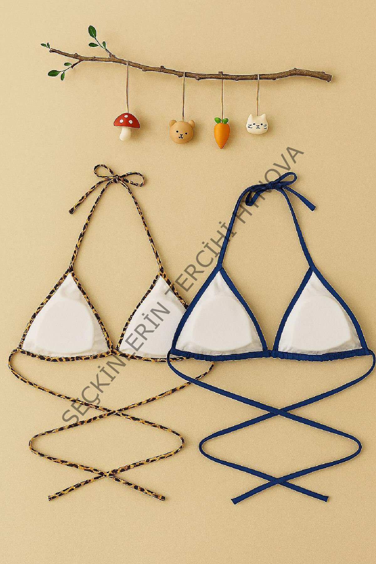 - Leopar deseniyle dikkat çeken bu bikini üstü, plaj modasına şıklık katıyor.