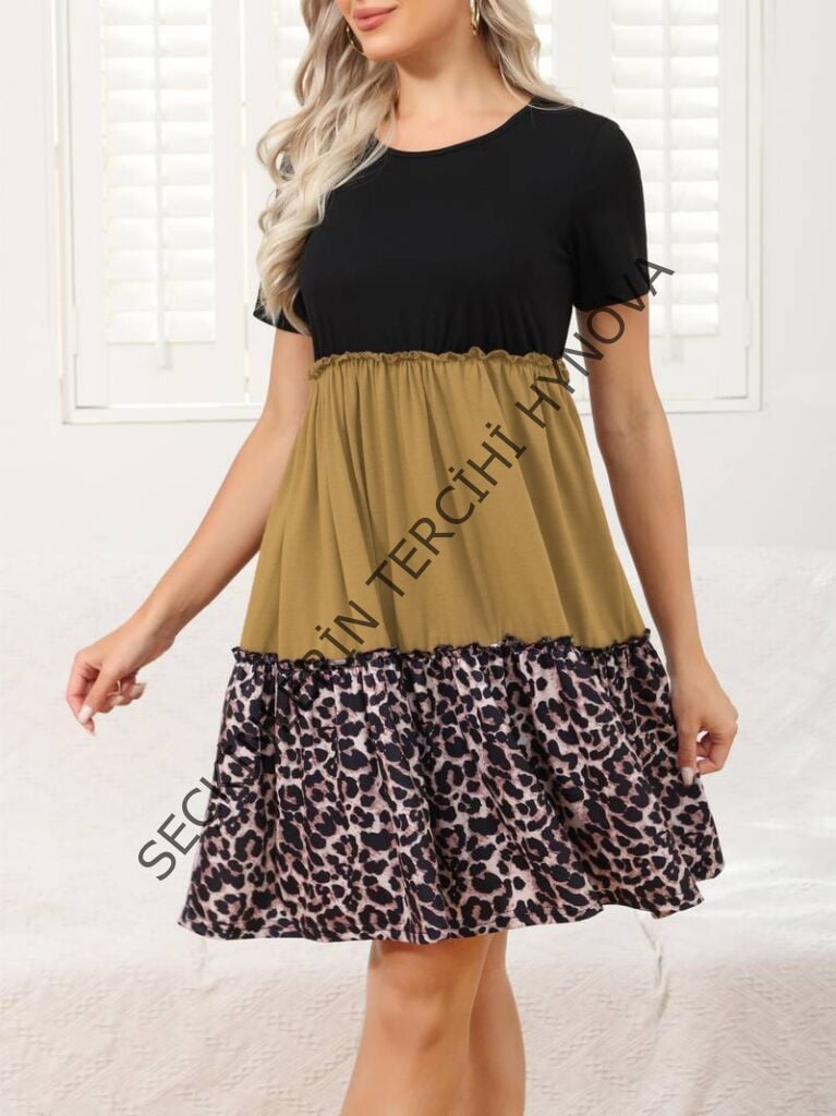 Kadın Leopar Detay üç Parça Viskon Elbise
