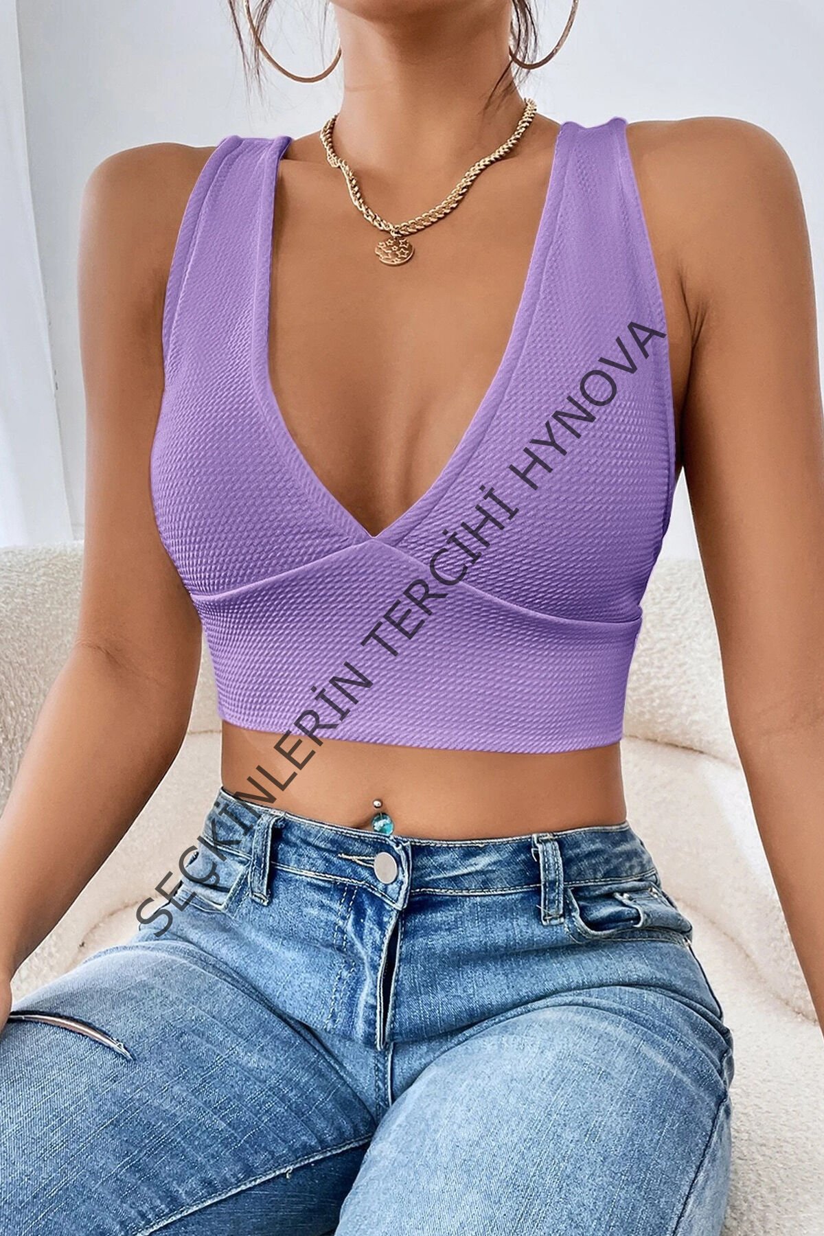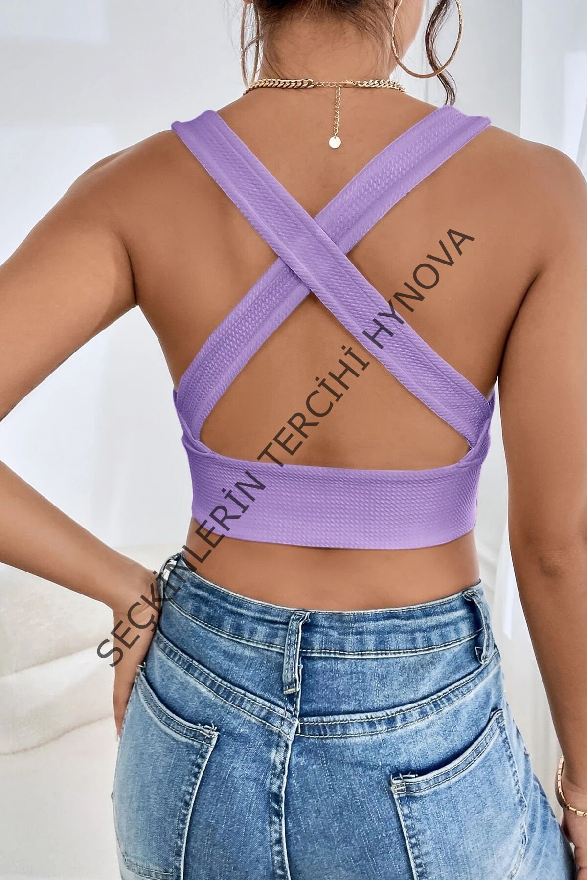 Kadın Lila Çapraz Sırt Detaylı Şık Crop Top Büstiyer