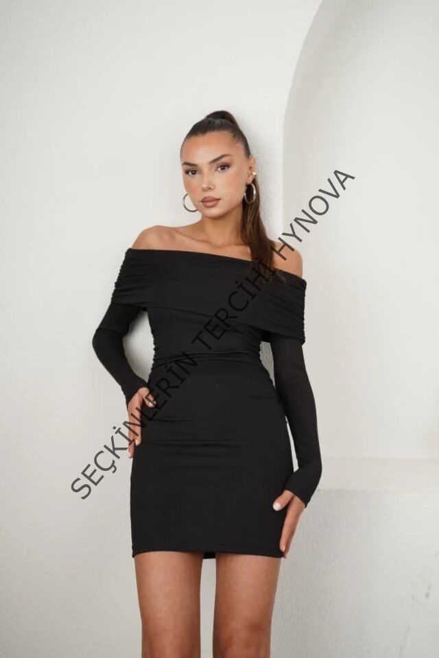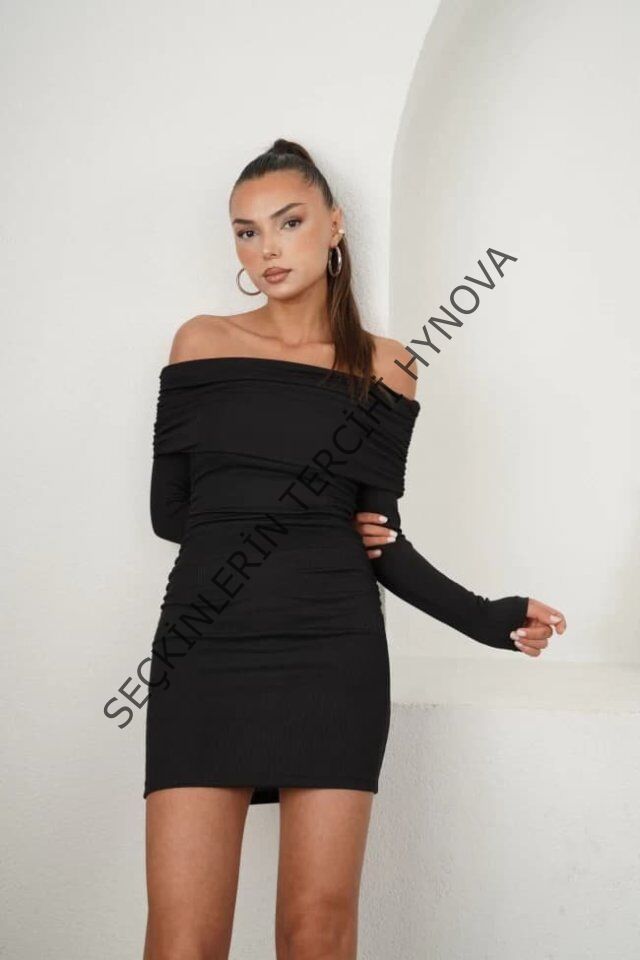 Kadın Madonna Mendil Yaka Fırsat ürün Büzgülü Mini Elbise