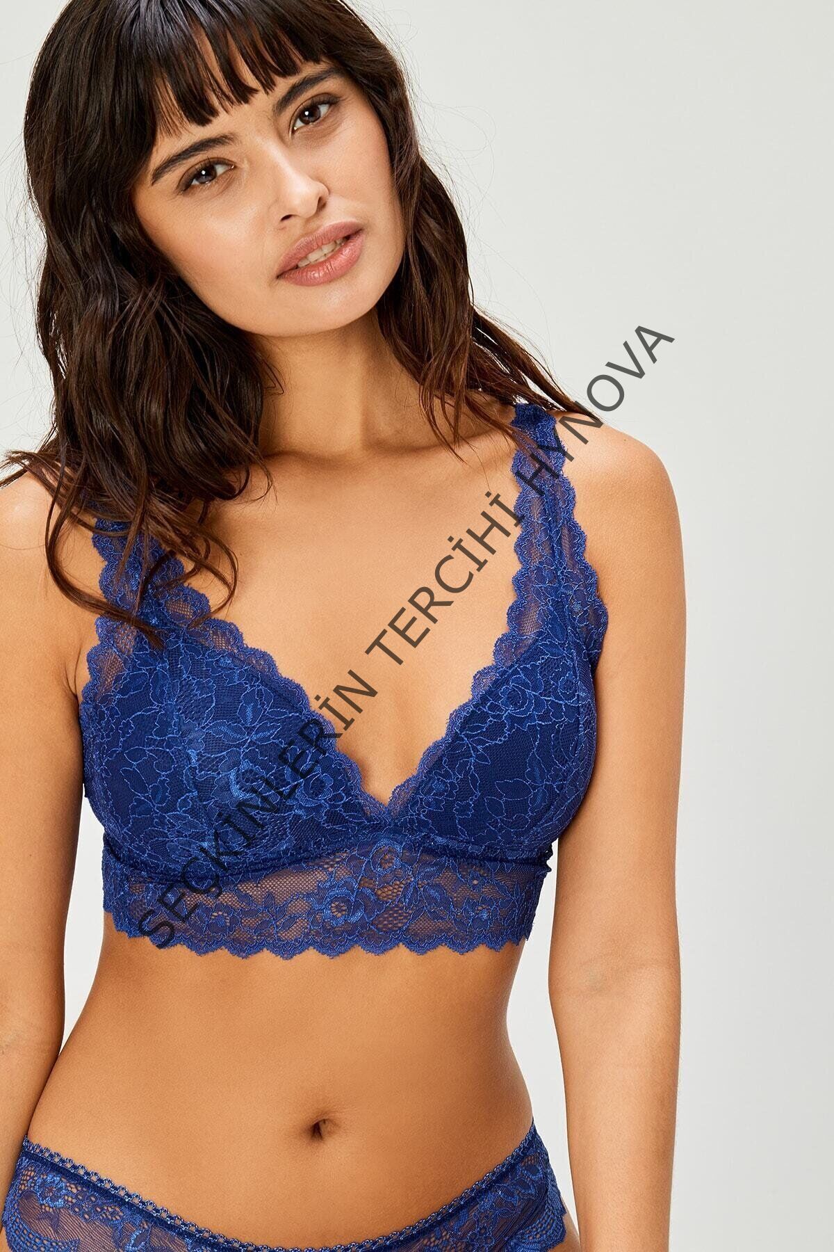 Kadın Mavi Dantelli Büstiyer Sütyen Külot Takımı – Modern, Konforlu ve Günlük Kombinlere Uygun