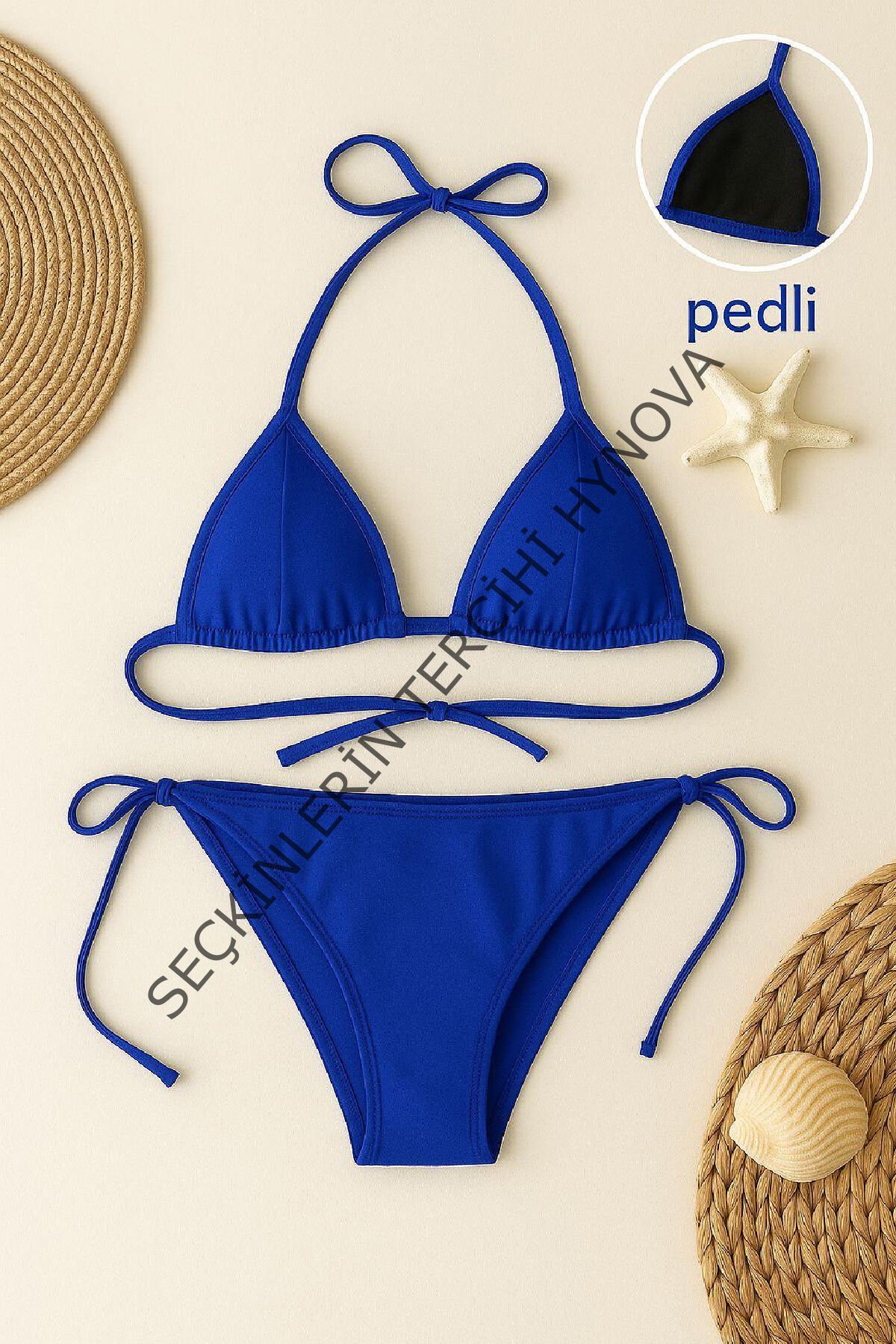 Kadın Mavi Yandan ve Boyundan Bağlamalı Bikini Mayo Takımı