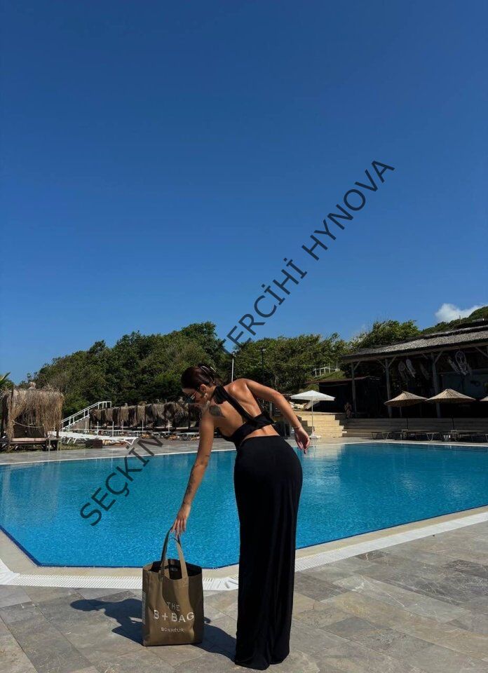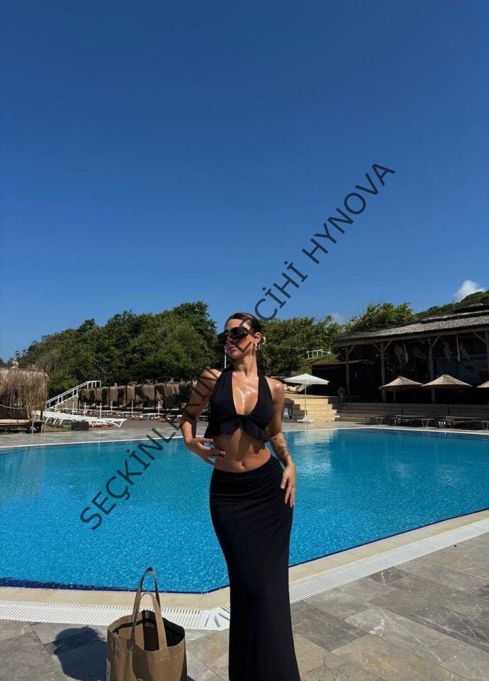 Kadın Mayo Kumaş Bağlamalı Crop Ve Maxi Boy Etek Ikili Takım