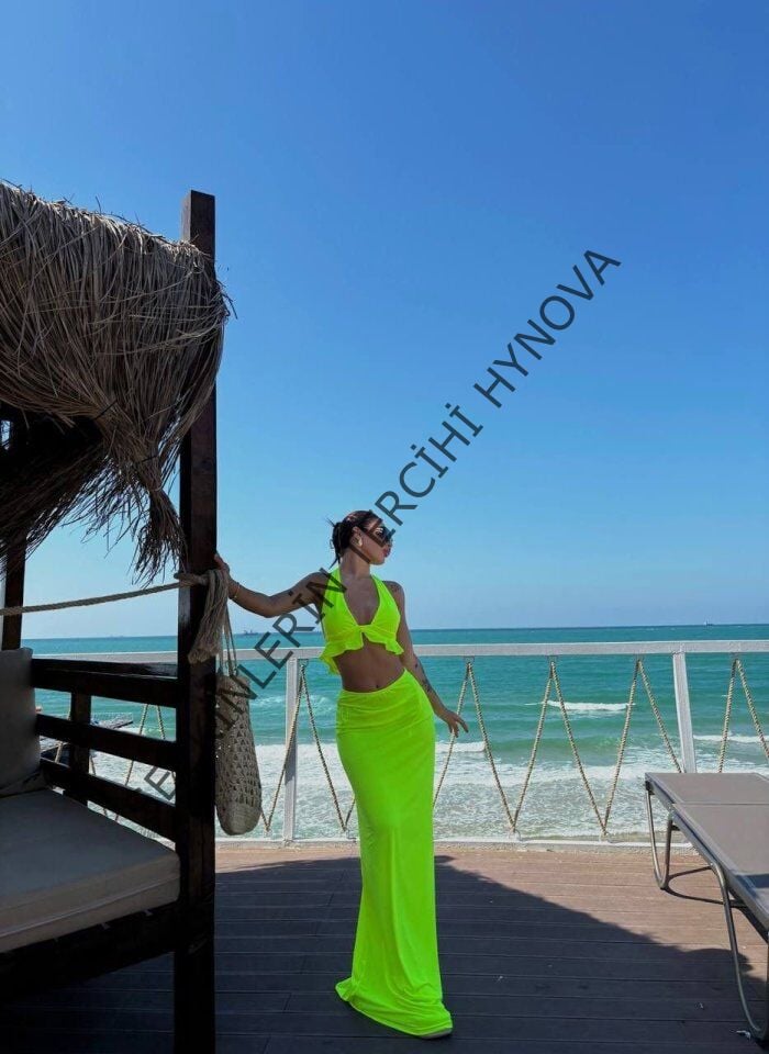 Kadın Mayo Kumaş Bağlamalı Crop Ve Maxi Boy Etek Ikili Takım 163518