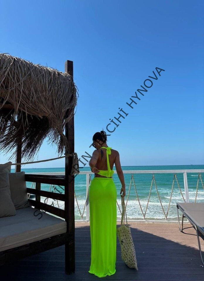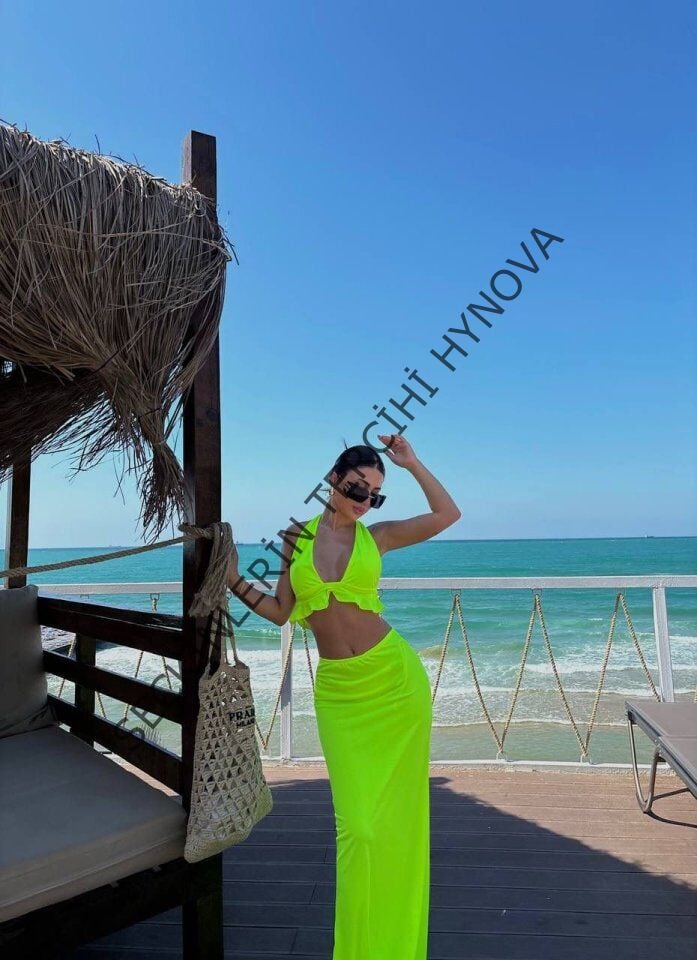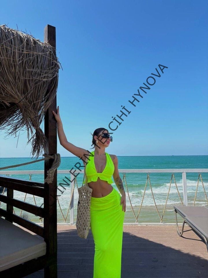 Kadın Mayo Kumaş Bağlamalı Crop Ve Maxi Boy Etek Ikili Takım