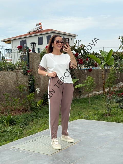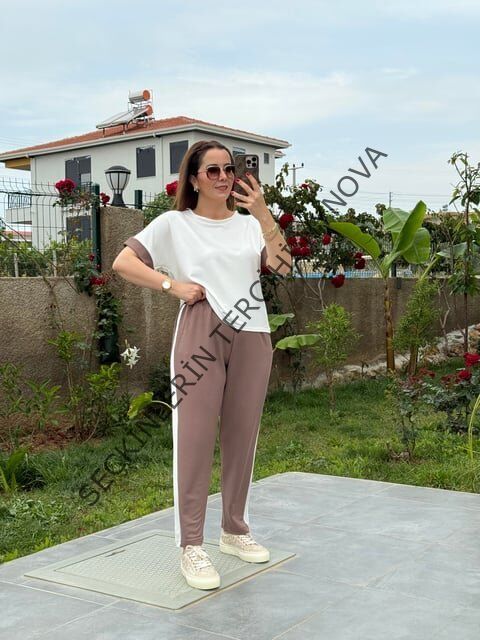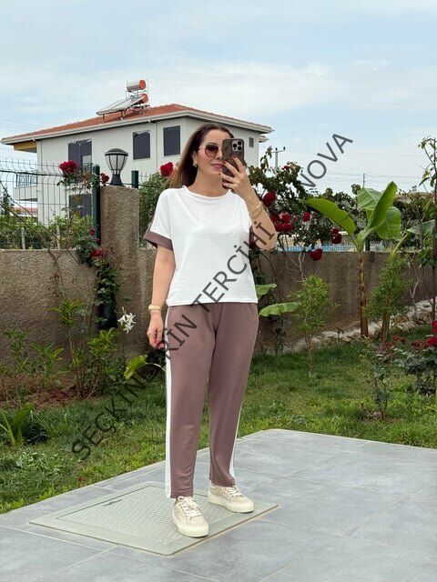 Kadın Modal Dokulu Kumaş Yanı şeritli Takım