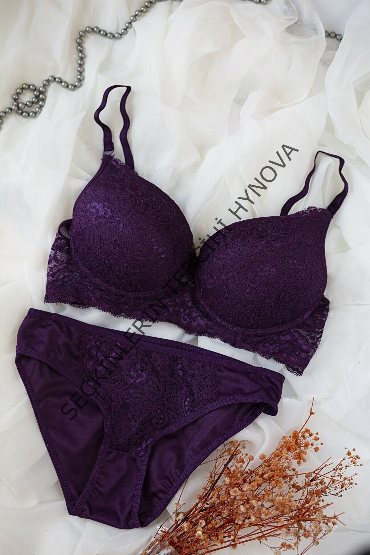 Kadın Mor Dolgulu Dantel Sütyen Ve Külot Takım – Modern, Konforlu ve Günlük Kombinlere Uygun