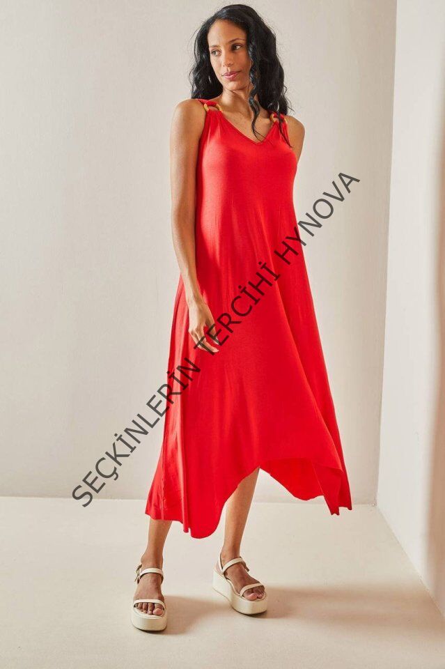 Kadın Omuz Askılı Toka Detay Maxi Boy Elbise