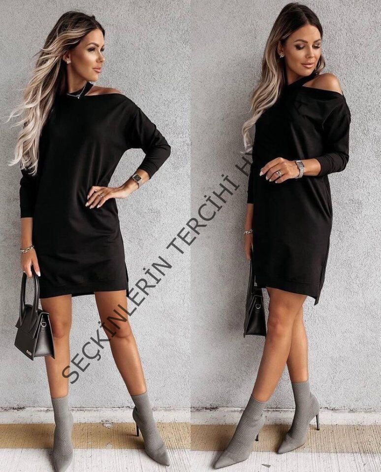 Kadın Omuz Detay İki İplik Mini Elbise