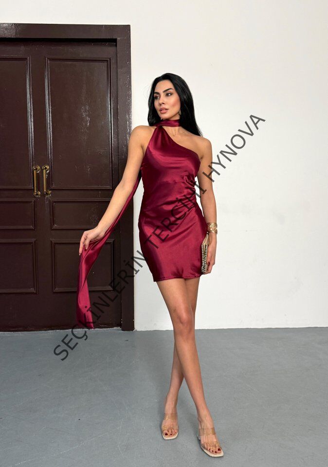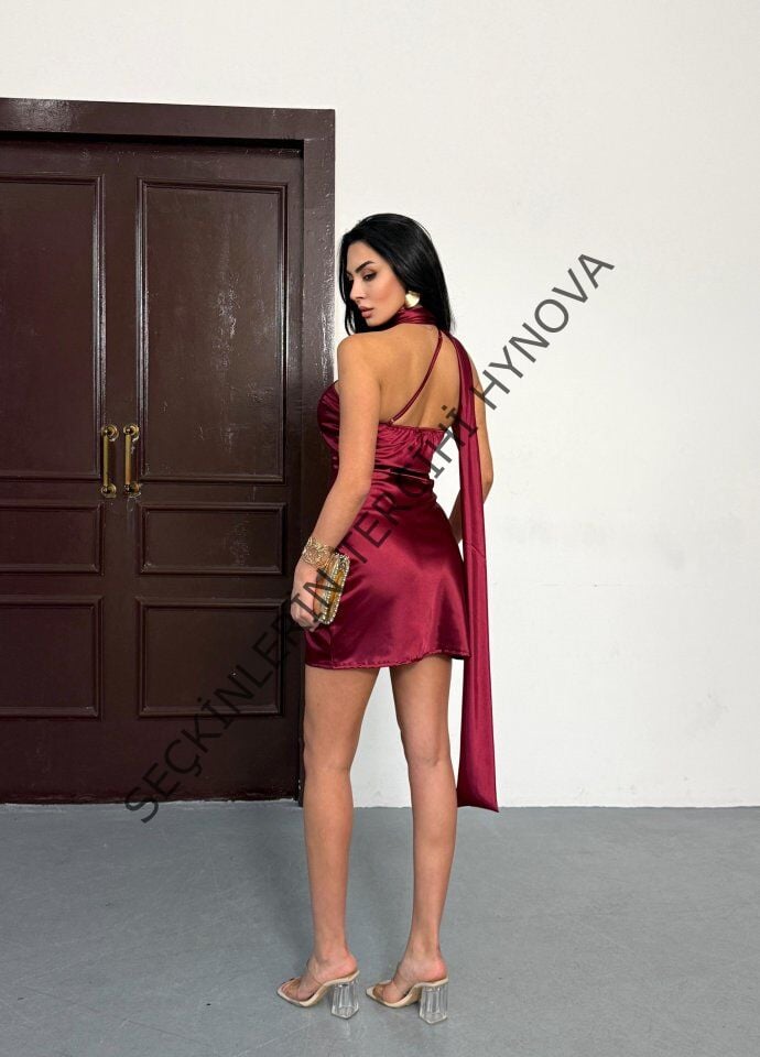 Kadın Omuz Ve Sırt Dekolteli Saten Kumaş Mini Elbise