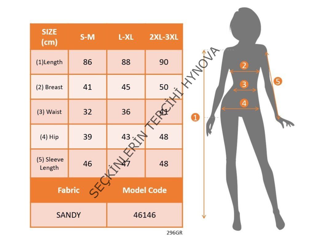 Modelin Ölçüleri: Boy:165, Kg:55, Göğüs:90, Bel:72, Kalça: 100