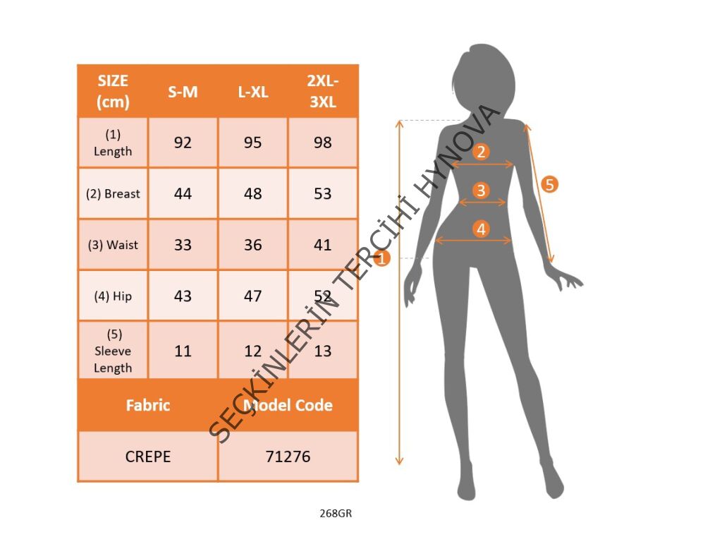 Modelin Ölçüleri: Boy:165, Kg:55, Göğüs:90, Bel:72, Kalça: 100