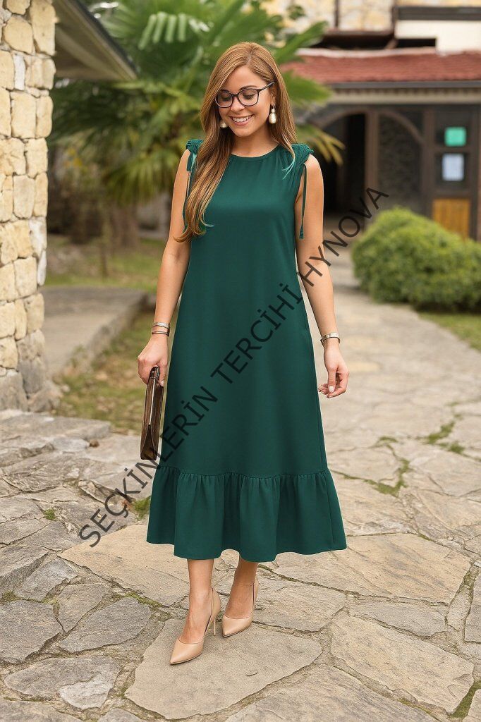 Kadın Omuzlardan Büzgülü Kayık Yaka Fırfırlı Janjan Krep Elbise