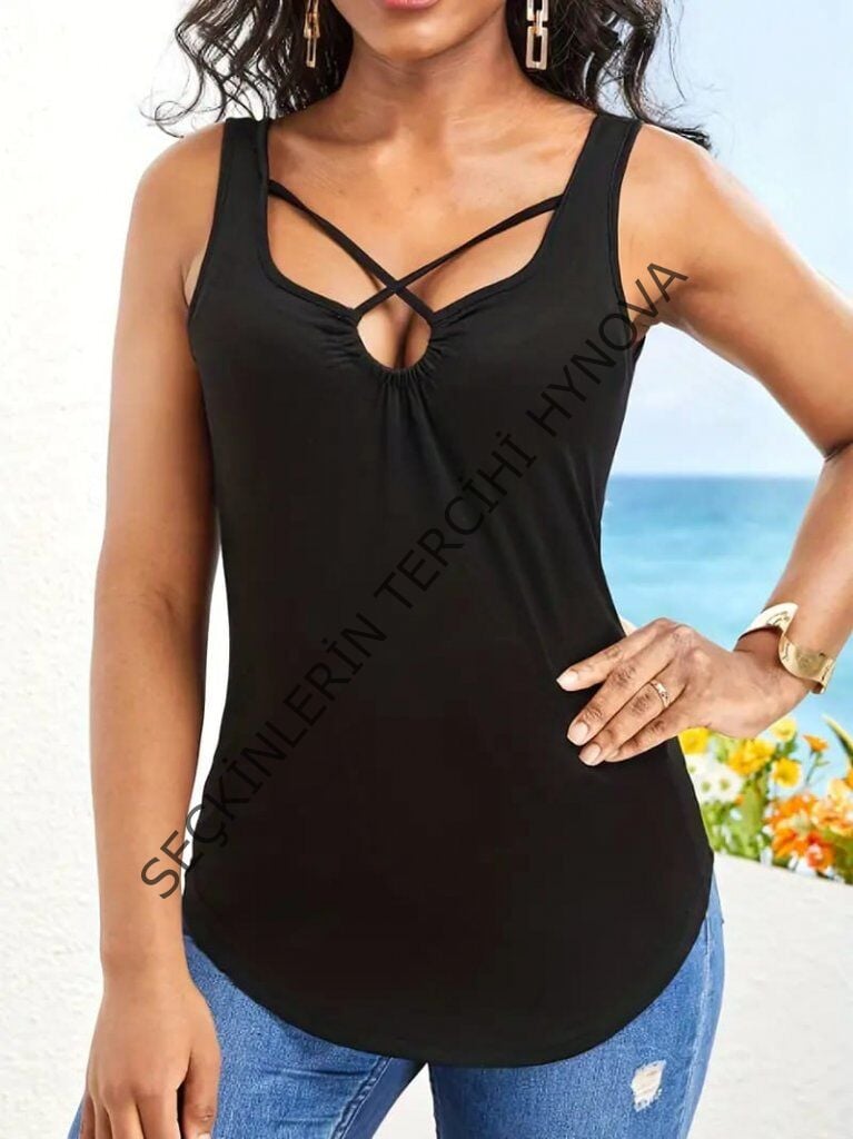Kadın önden çapraz Detay şerit Askılı Viskon Bluz