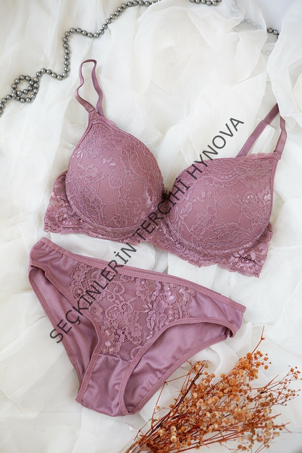 Kadın Pudra Dolgulu Dantel Sütyen Ve Külot Takım – Modern, Konforlu ve Günlük Kombinlere Uygun