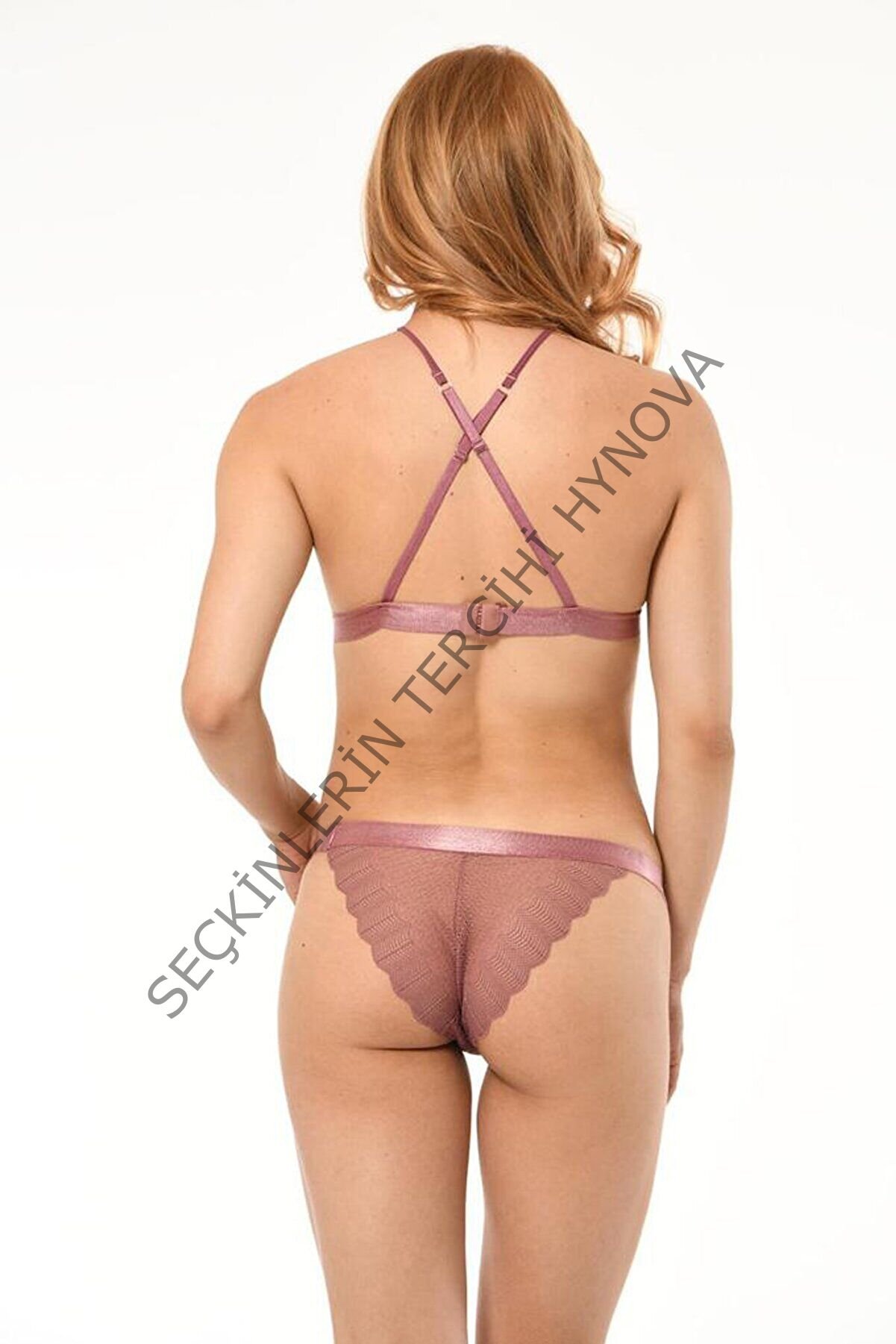 Kadın Pudra Transparan Dantelli Kapsız Sütyen Takımı – Modern, Konforlu ve Günlük Kombinlere Uygun