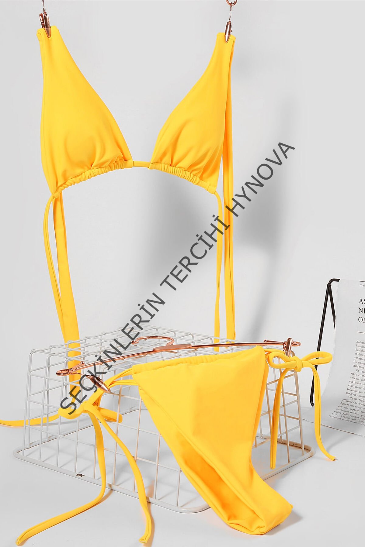 Kadın Sarı Yandan Bağlamalı Tangalı Üçgen Bikini Mayo Takımı – Modern, Konforlu ve Günlük Kombinlere Uygun