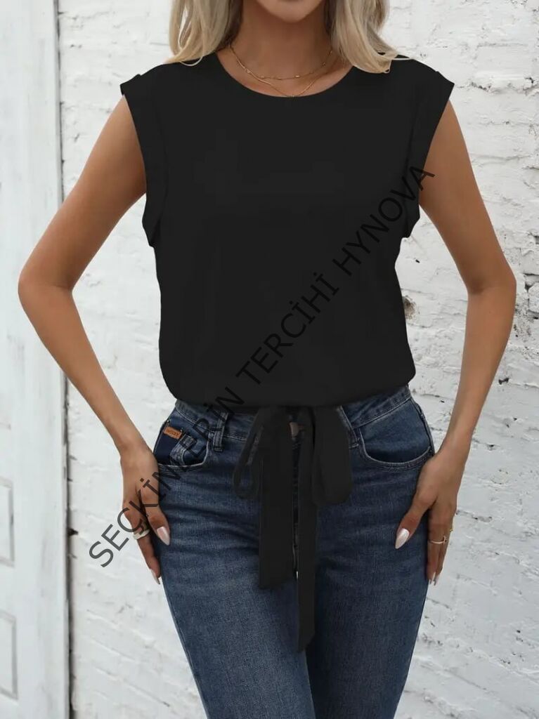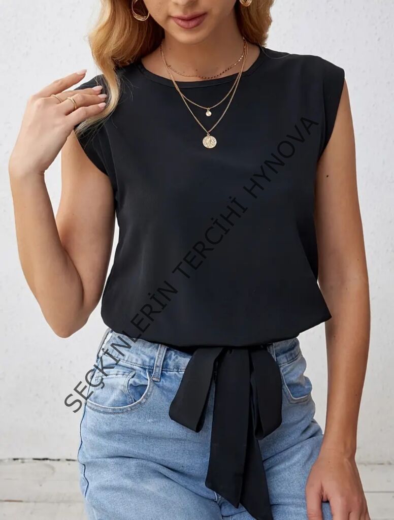 Kadın Sıfır Kol Etek Ucu Bağlama Detay Ithal Krep Bluz