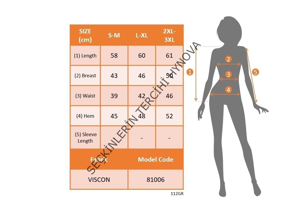 Modelin Ölçüleri: Boy:165, Kg:55, Göğüs:90, Bel:72, Kalça: 100