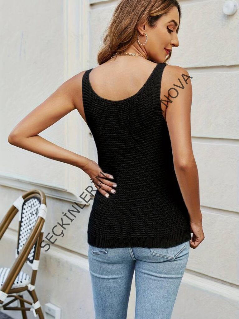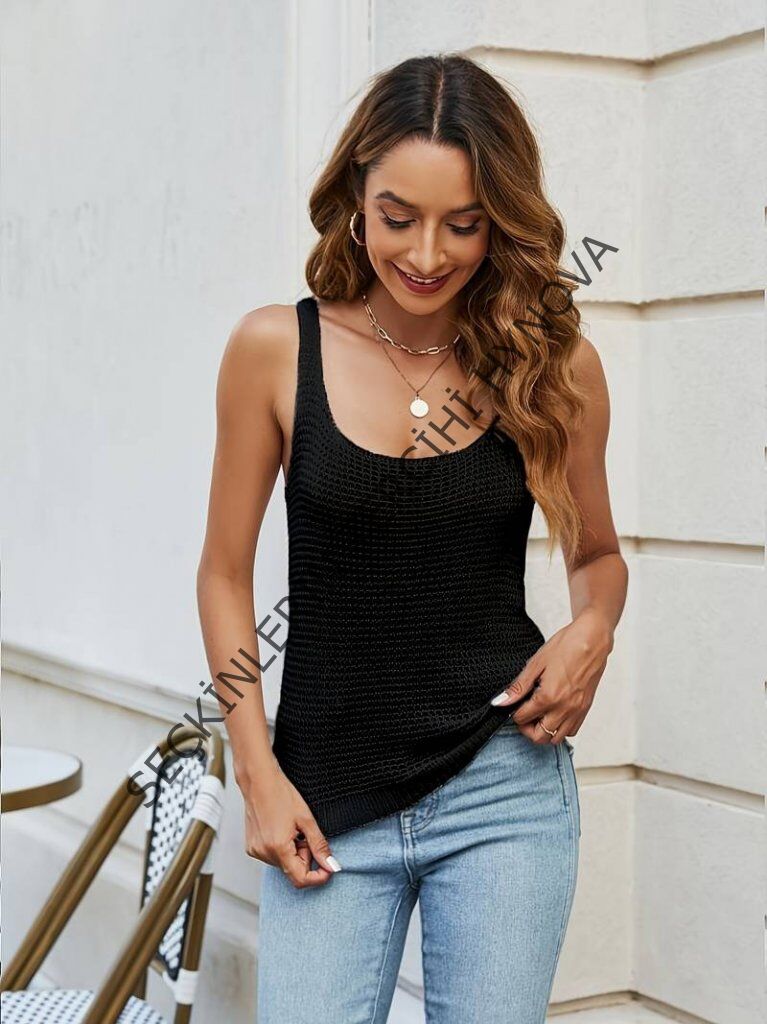 Kadın Sıfır Kol U Yaka Askılı Triko Bluz