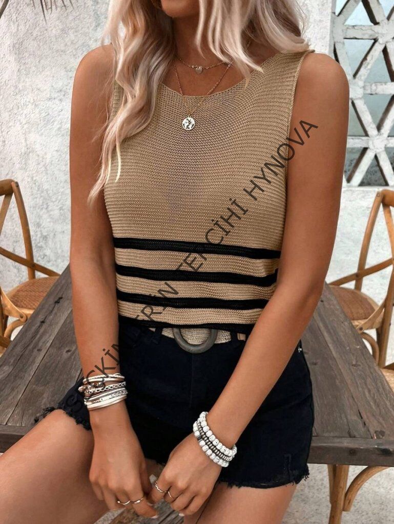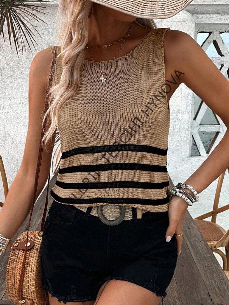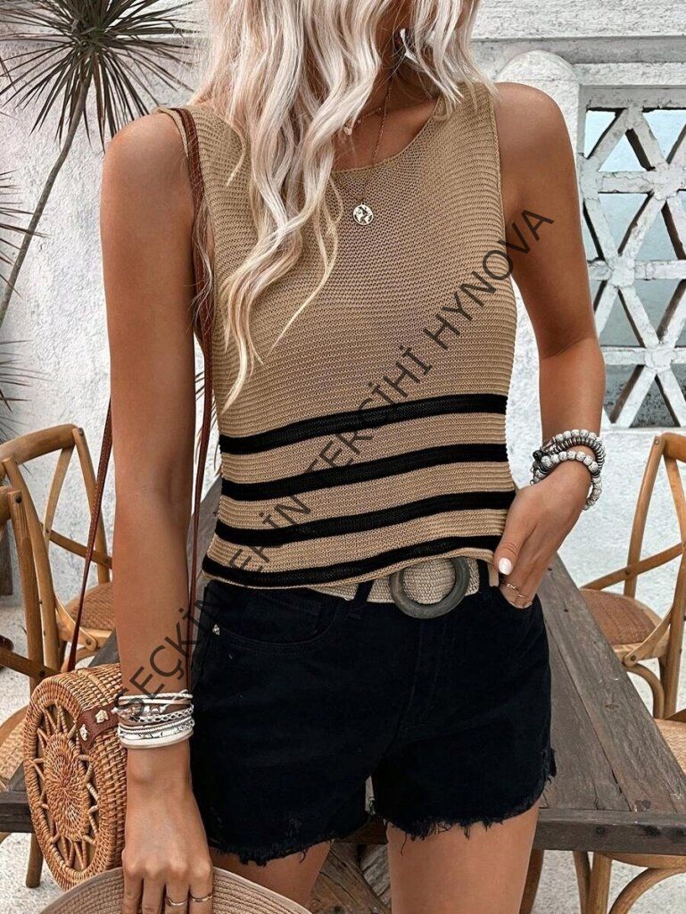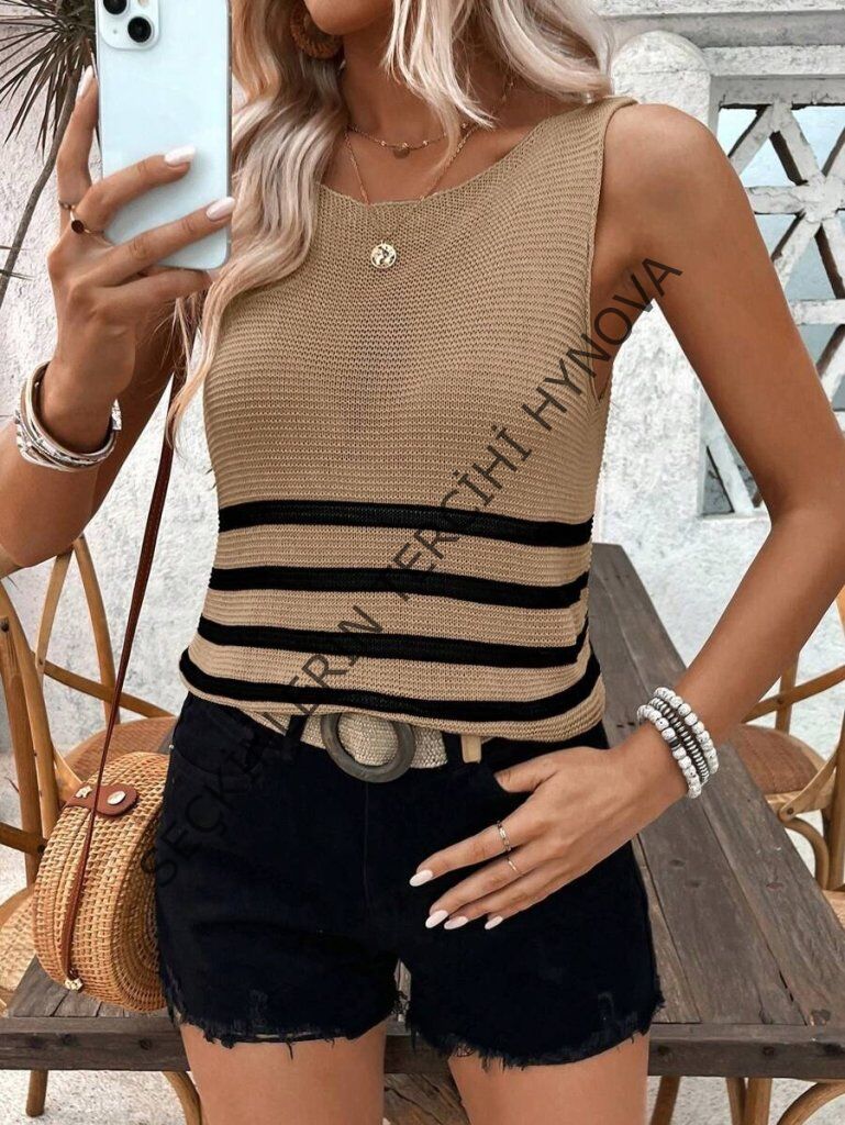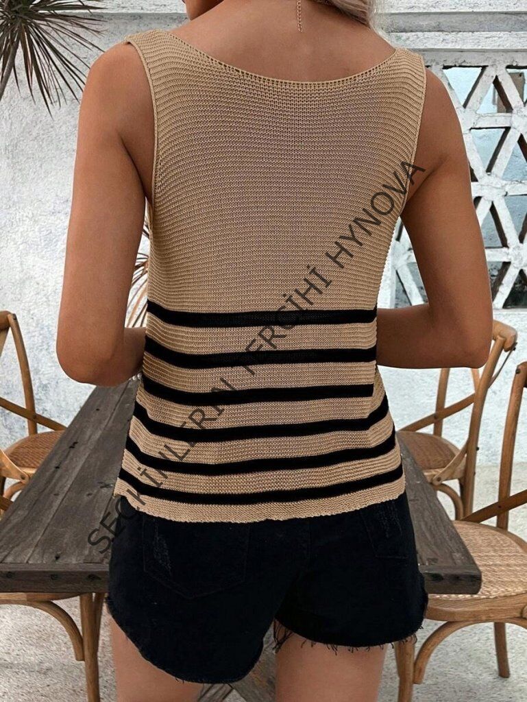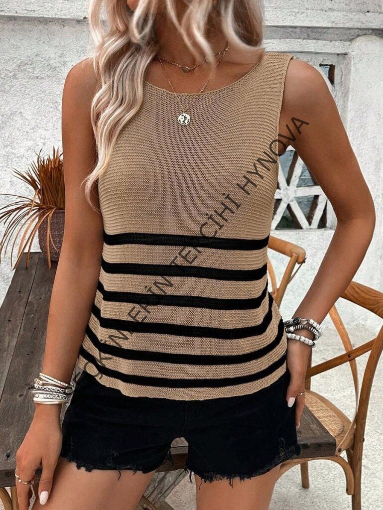 Kadın Sıfır Kol Yuvarlak Yaka şerit Detay Triko Bluz