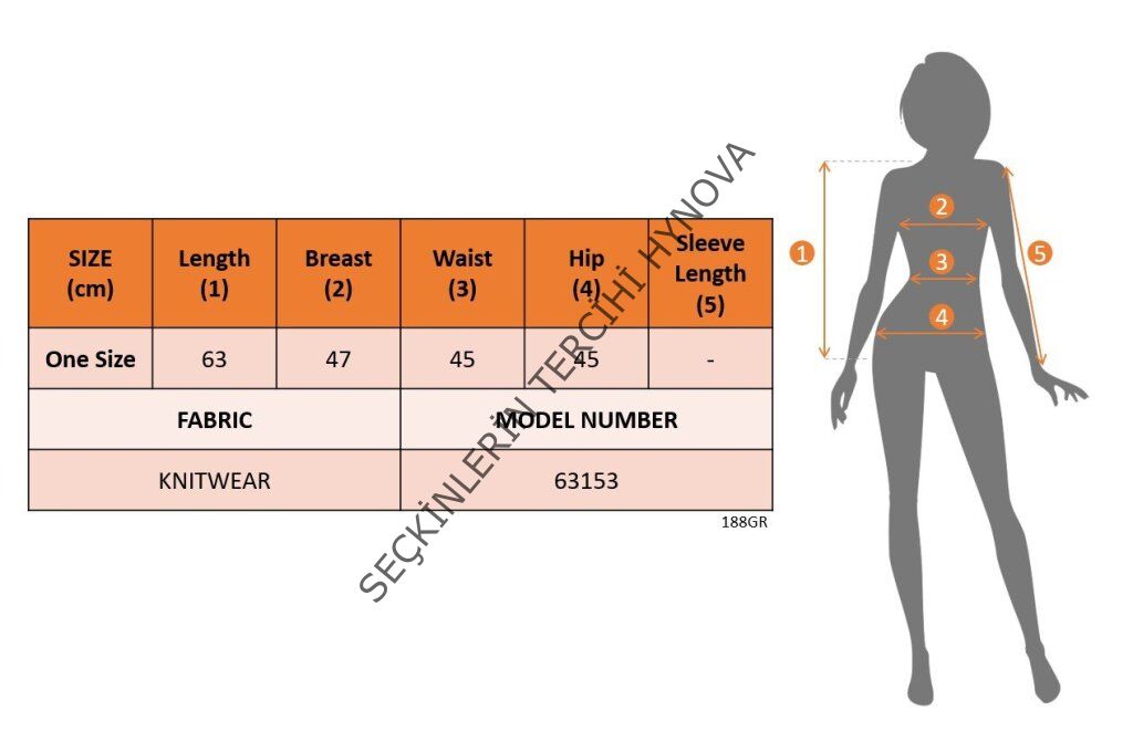 Modelin Ölçüleri: Boy:165, Kg:55, Göğüs:90, Bel:72, Kalça: 100