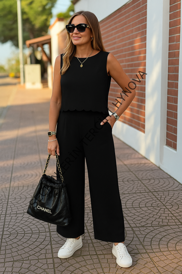 Kadın Sıfır Kollu Bisiklet Yaka Arkadan Bağlamalı Aer8bin Bluz Ve Pantolon Ikili Takım
