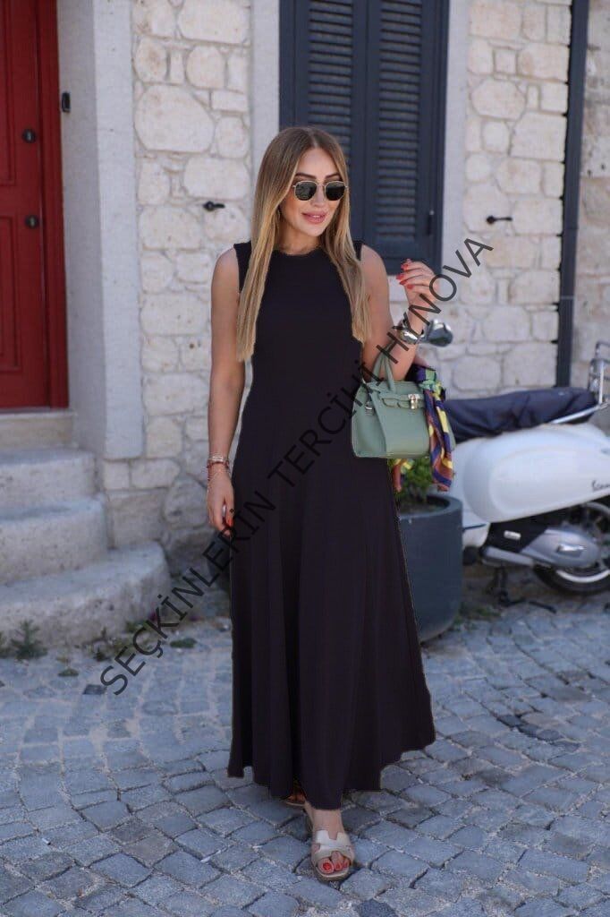 Kadın Sıfır Kollu Bisiklet Yaka Viskon Elbise
