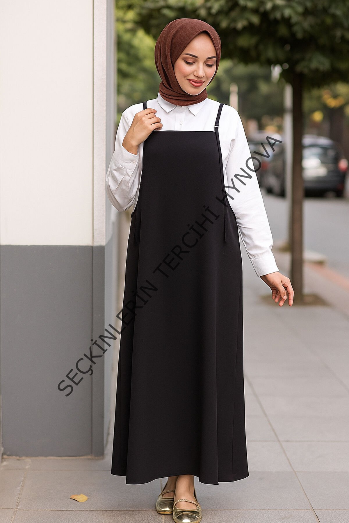 - Her kadının dolabında mutlaka bulunması gereken bu kadın siyah askılı jile elbise, hem şık hem de pratik kombinler için ideal bir seçim.