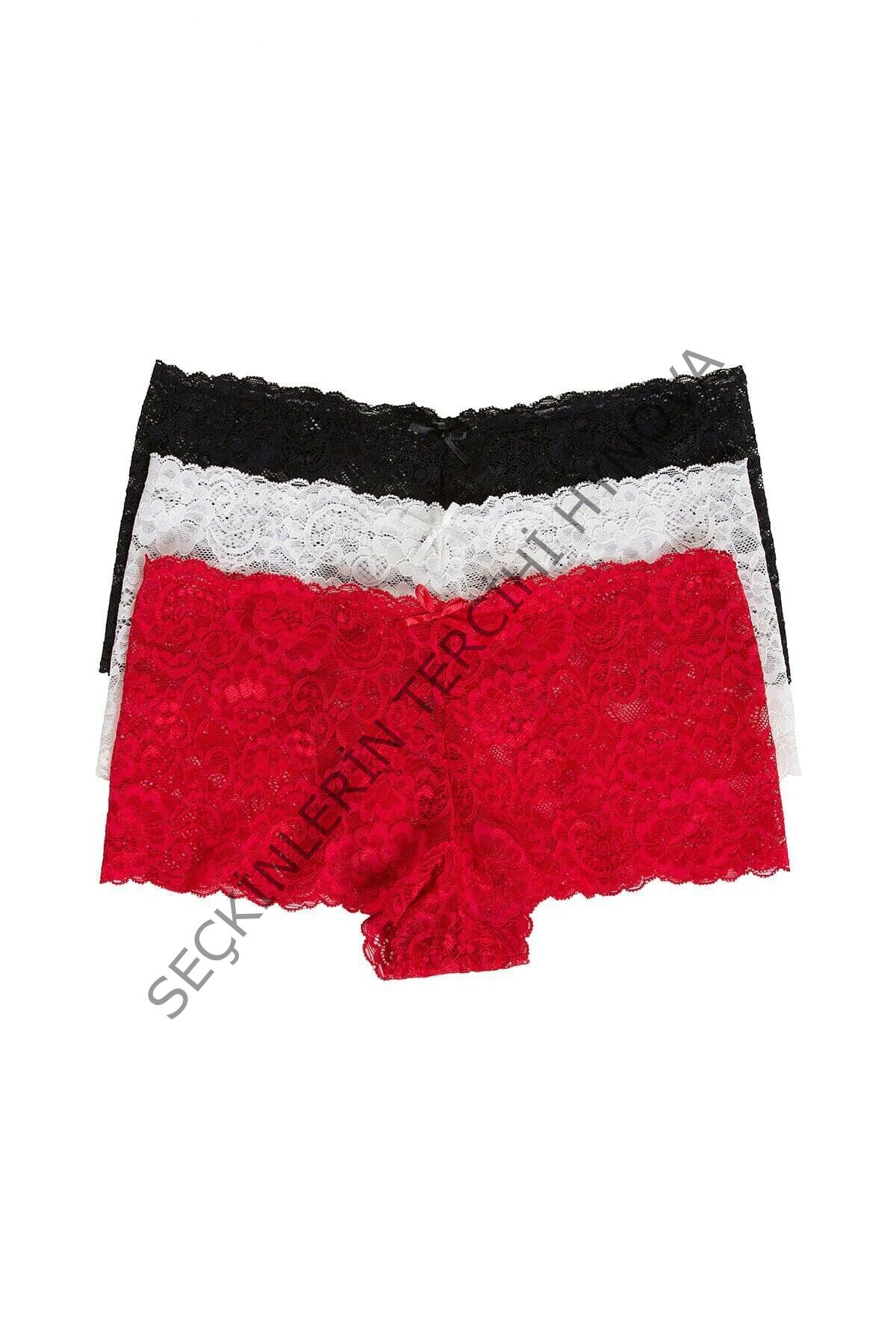 Kadın Siyah Beyaz Kırmızı 3'lü Paket Dantel Tanga Şort Külot – Modern ve Şık Tasarım