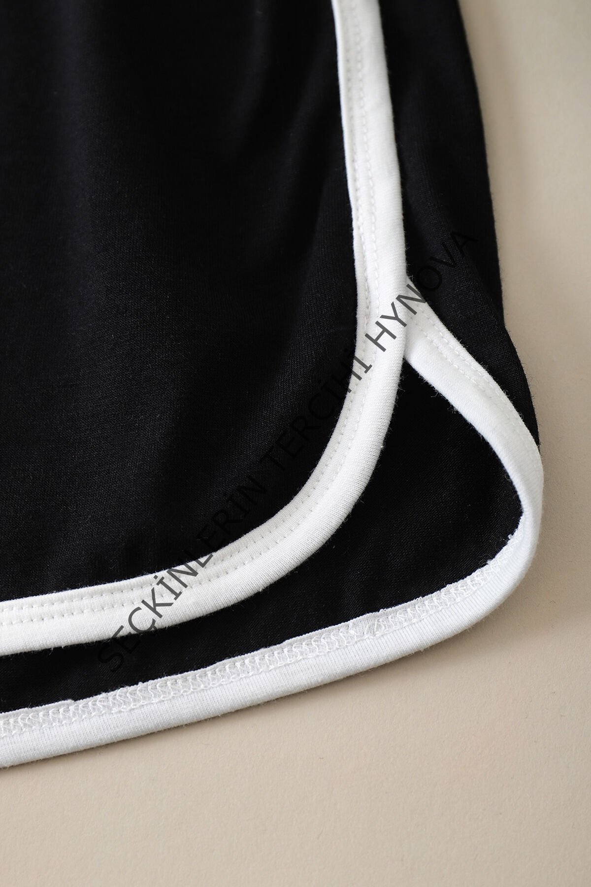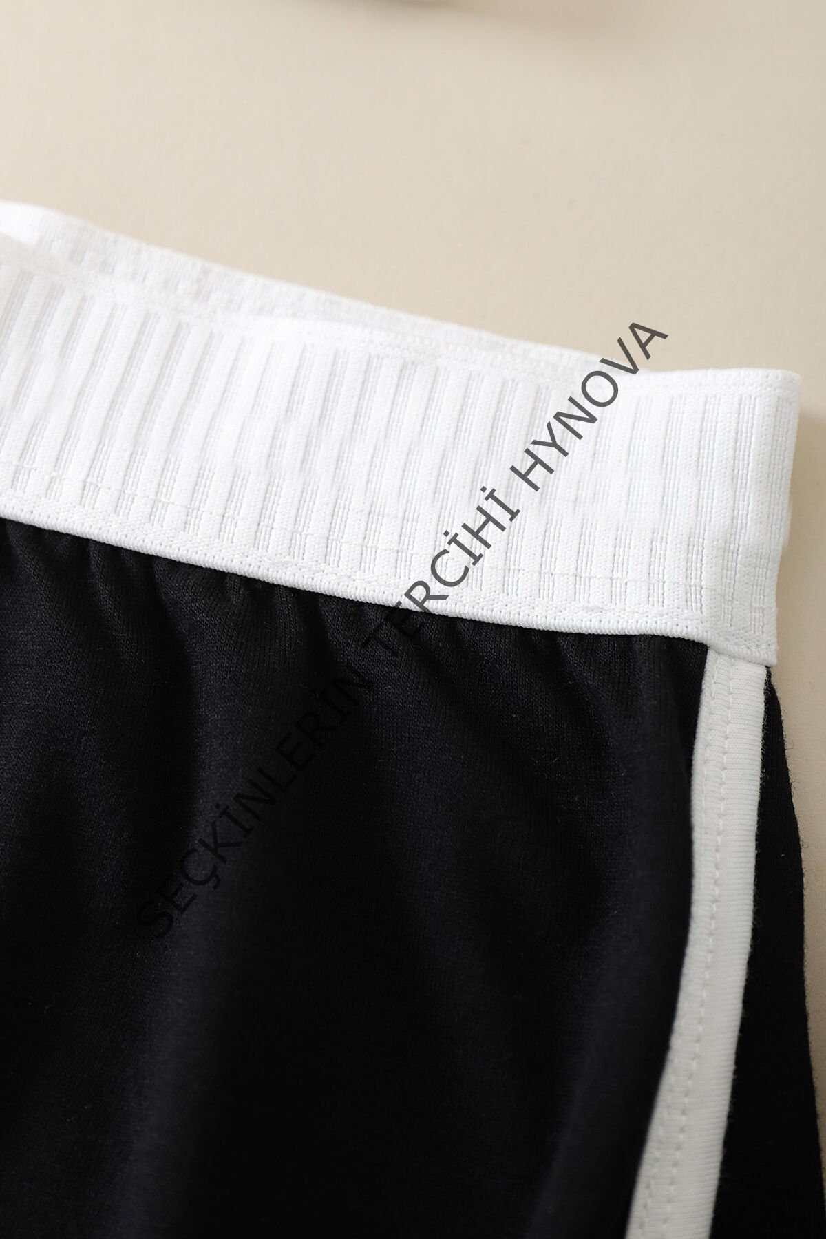 Kadın Siyah Beyaz Lastikli Çapraz Crop Toplu Şortlu Gecelik Takım – Modern, Konforlu ve Günlük Kombinlere Uygun