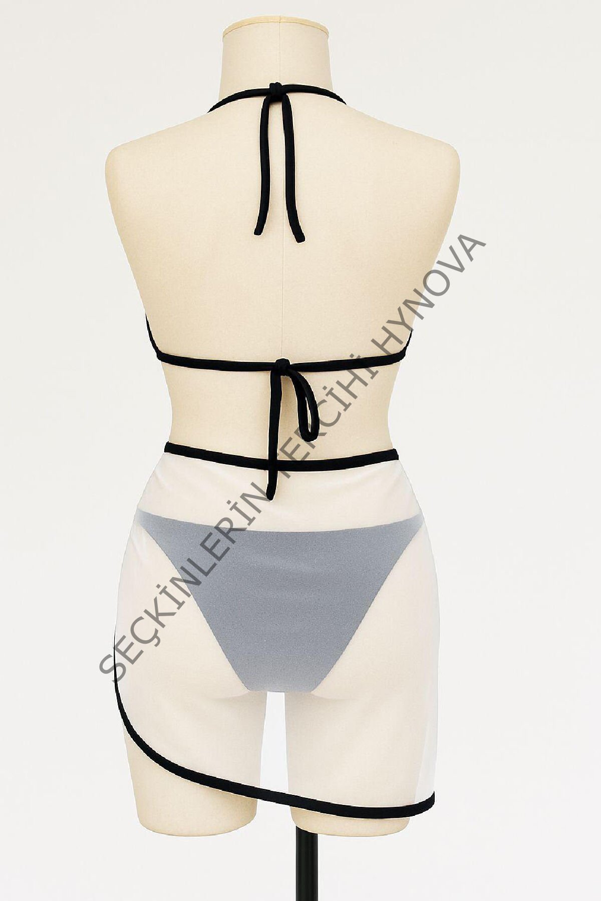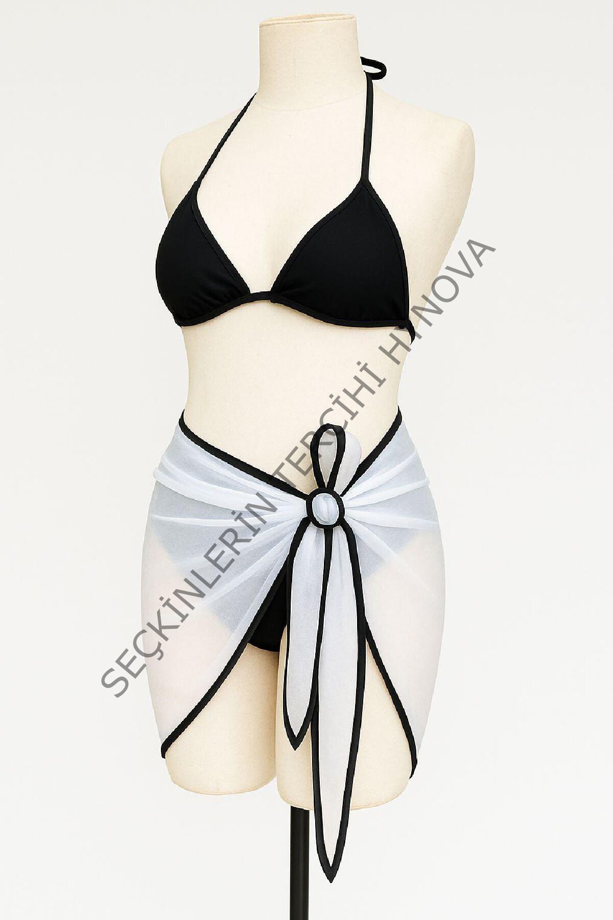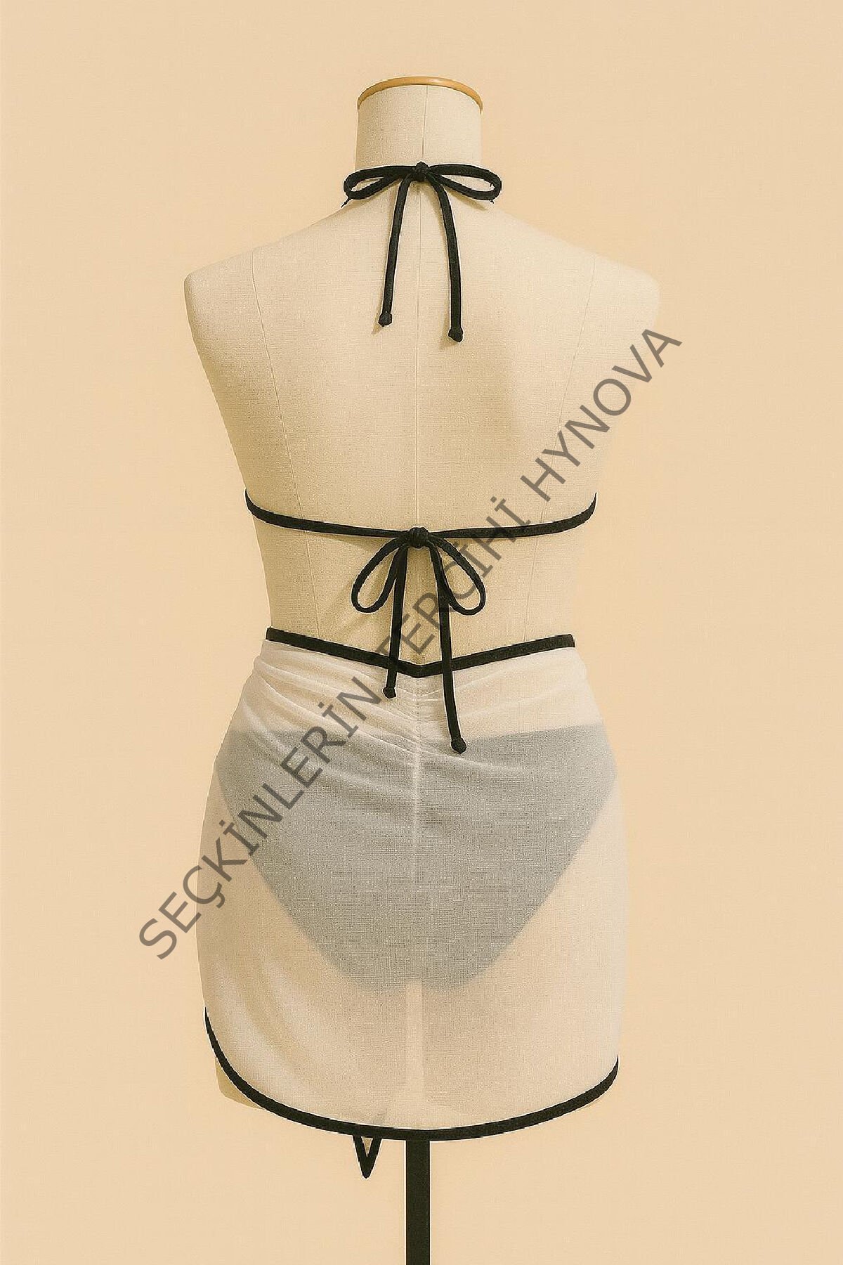 Kadın Siyah Beyaz Pareolu Yandan ve Boyundan Bağlamalı 3'lü Bikini Takımı – Modern, Konforlu ve Günlük Kombinlere Uygun