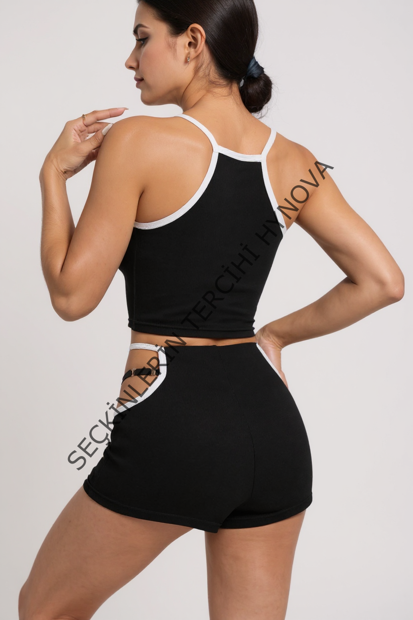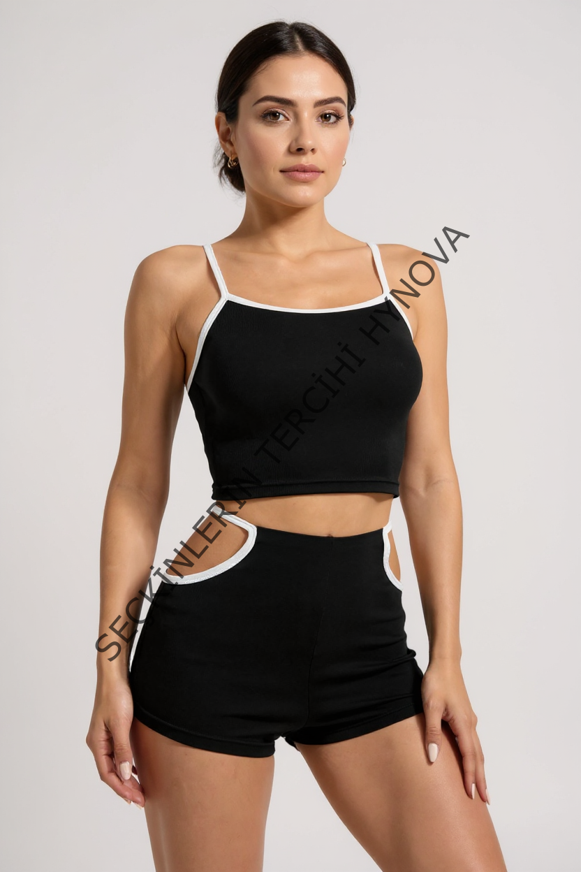 - Siyah Beyaz Lastikli Şorlu Takım.