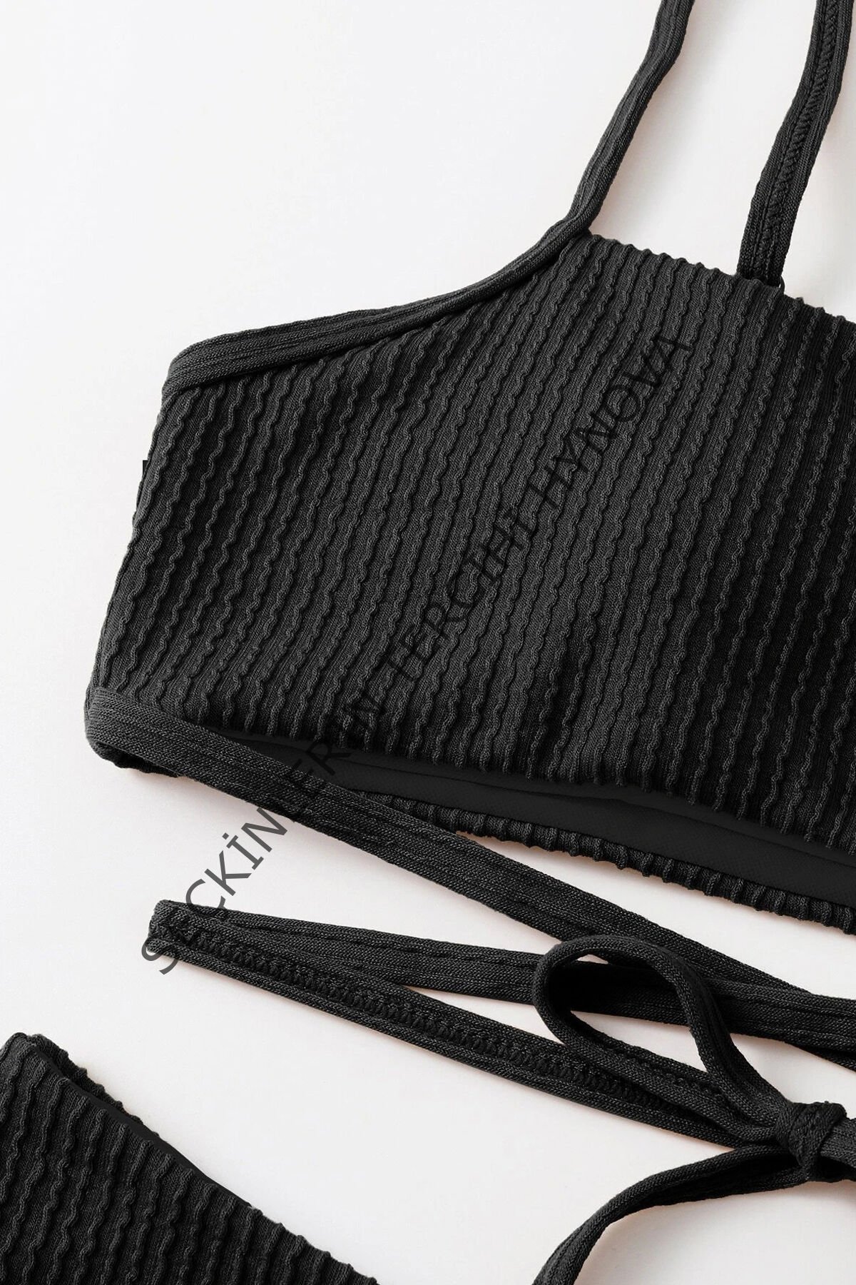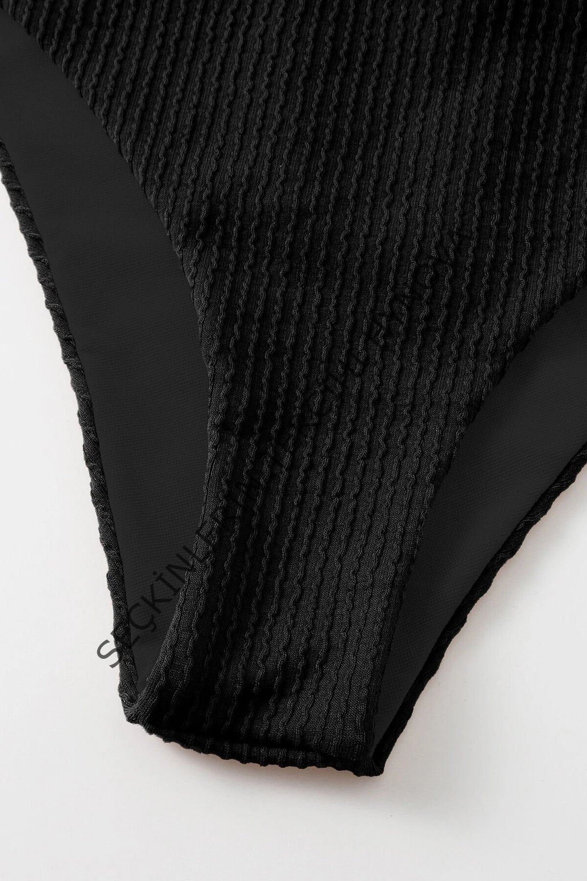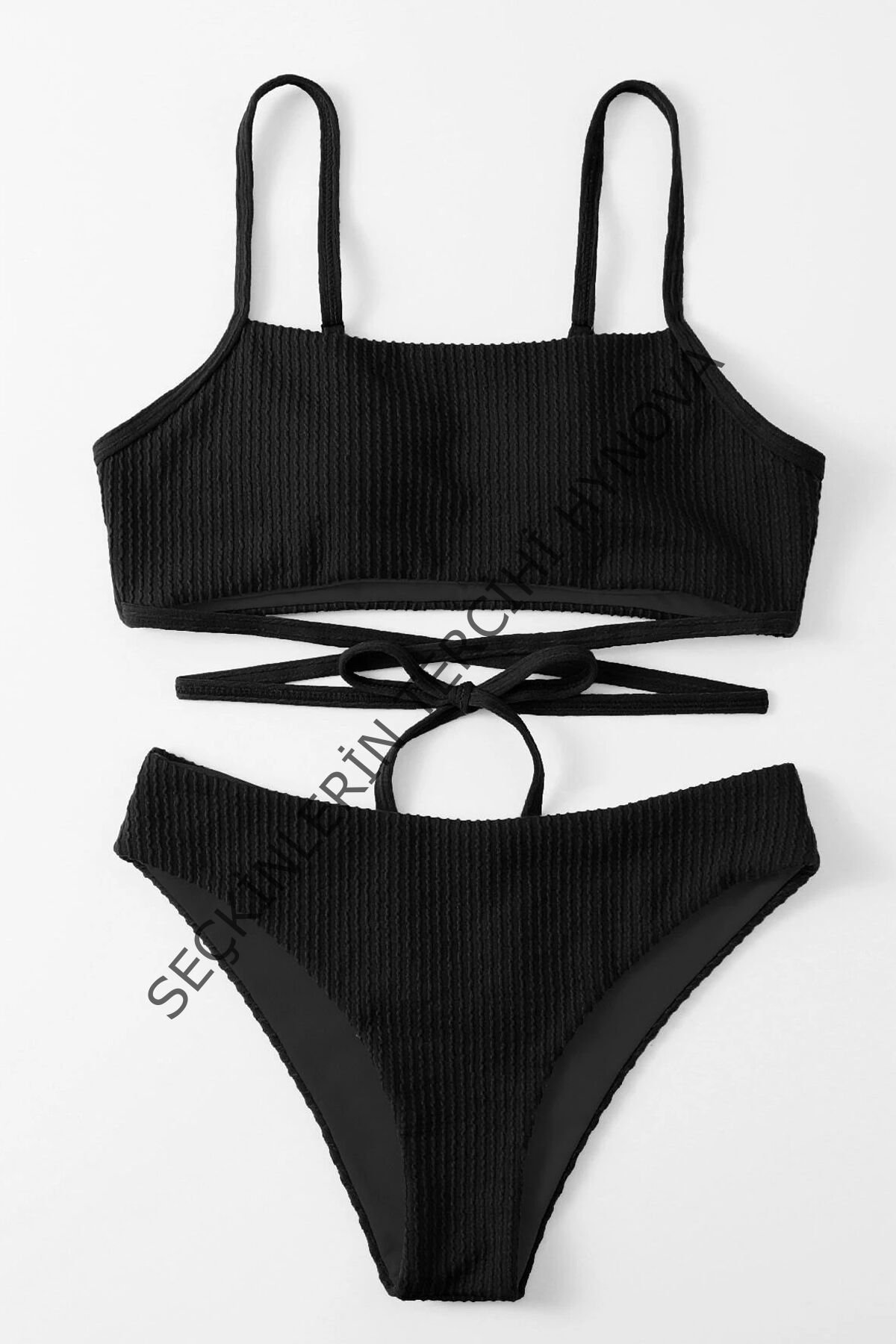 Kadın Siyah Çapraz Bağlama Detaylı Yüksek Bel Bikini Takımı – Modern, Konforlu ve Günlük Kombinlere Uygun