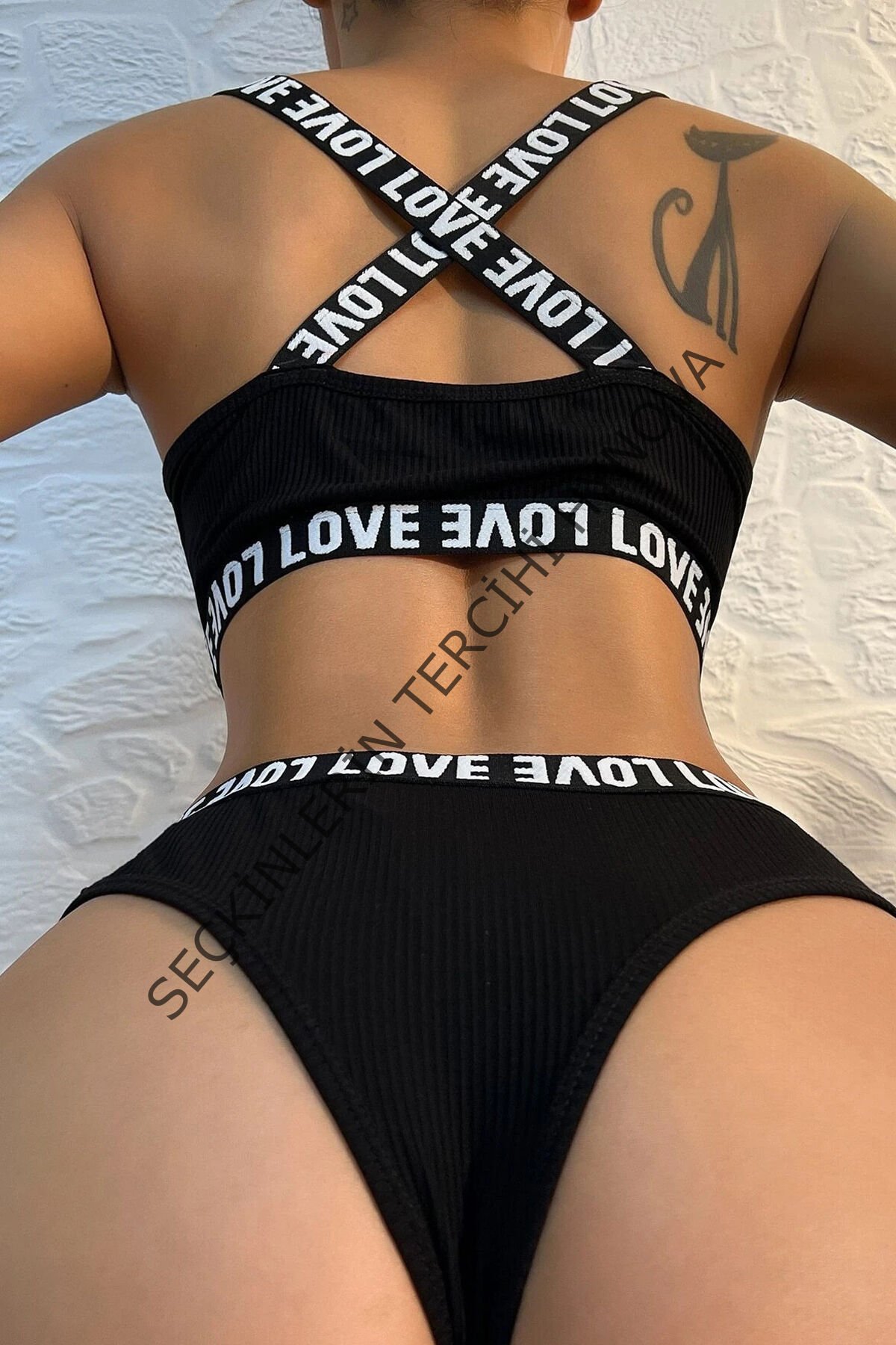 Kadın Siyah Çapraz Sırt Ve Love Yazı Detaylı Iç Çamaşır Takımı – Modern, Konforlu