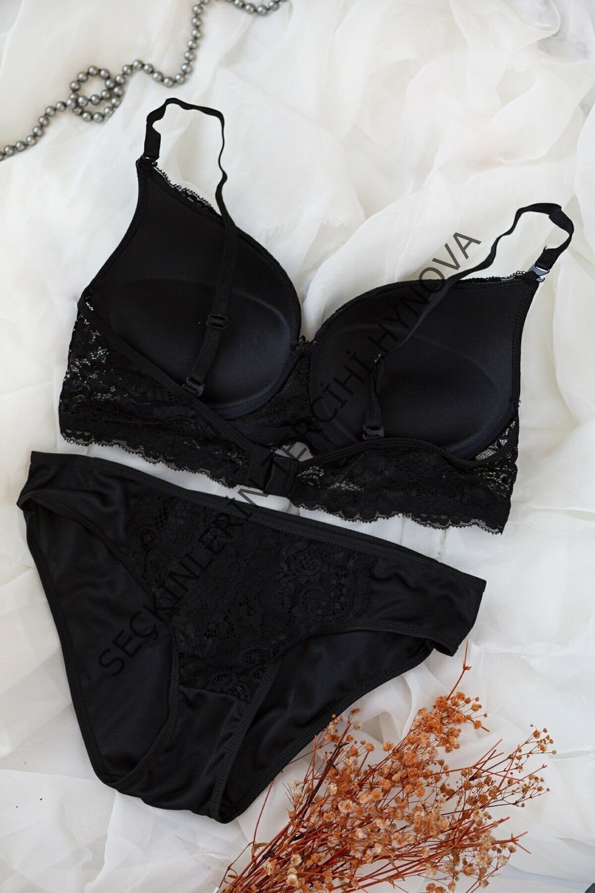 Kadın Siyah Dolgulu Dantel Sütyen Ve Külot Takım – Modern, Konforlu ve Günlük Kombinlere Uygun
