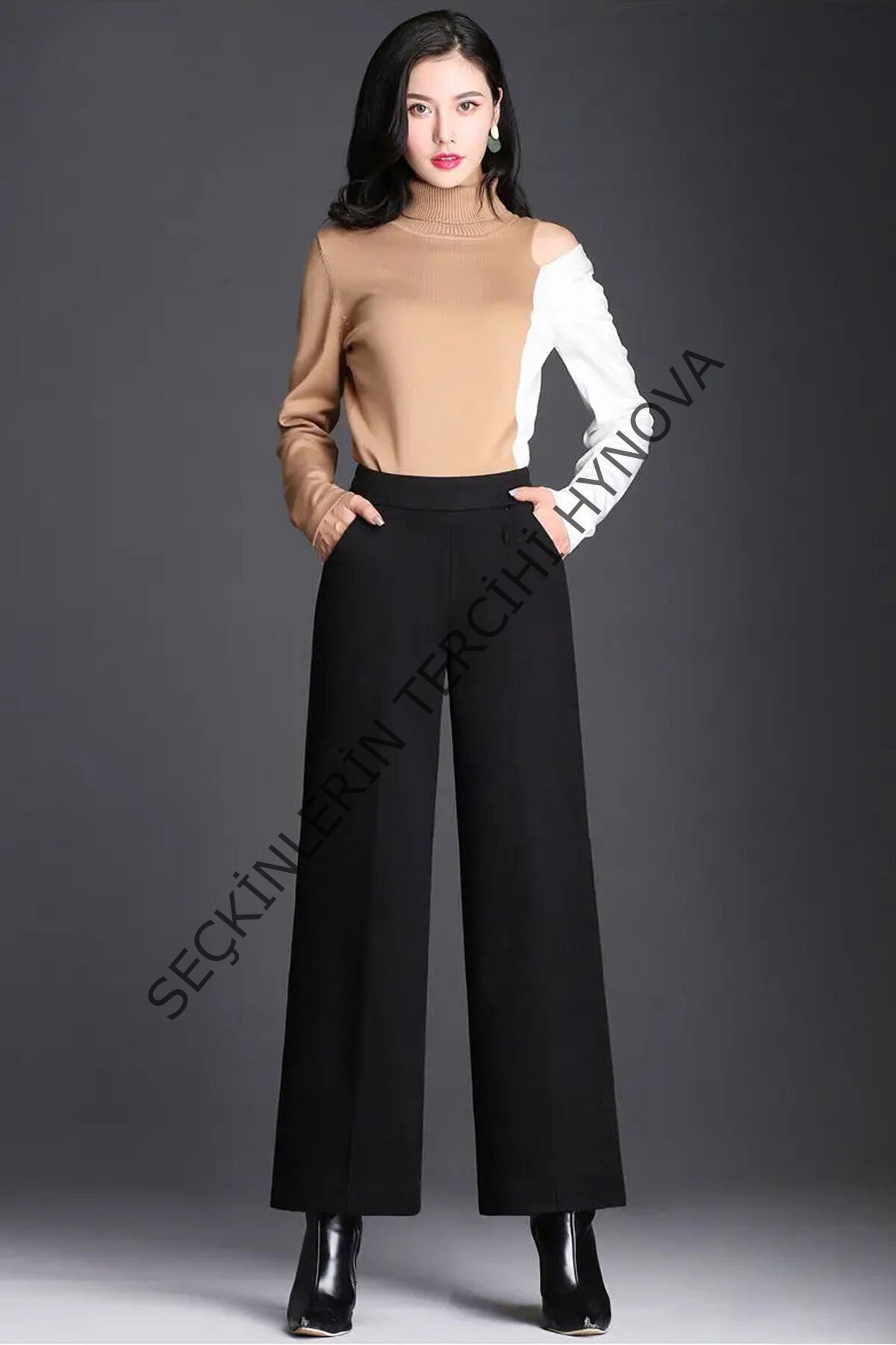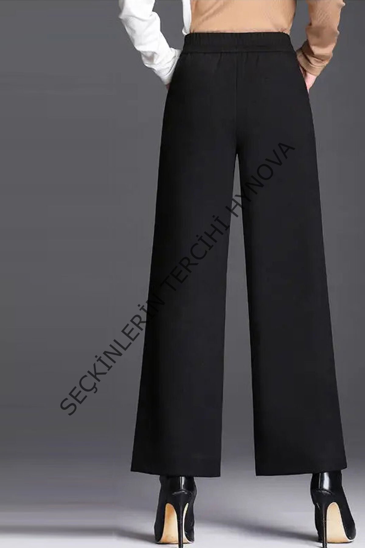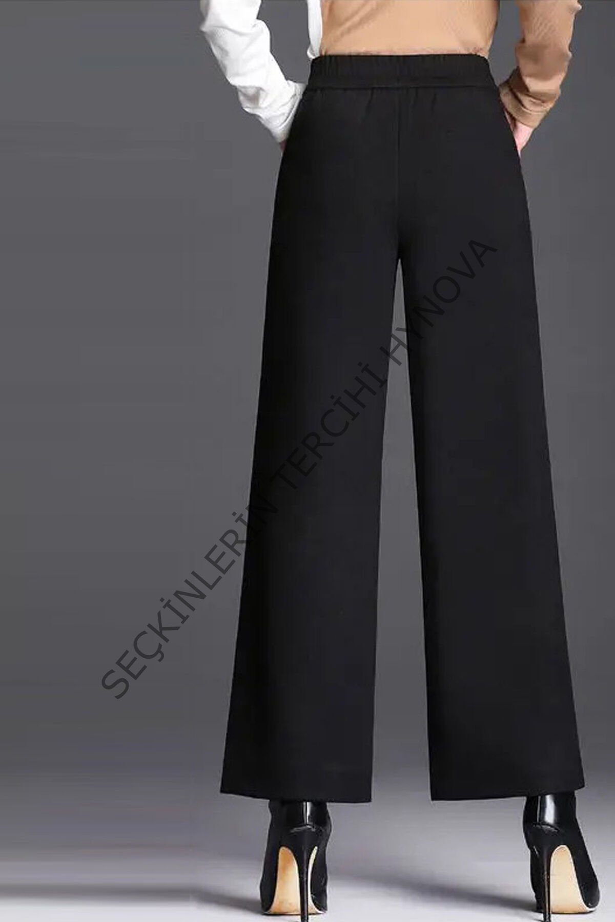 Kadın Siyah Geniş Paça Vintage Palazzo Pantolon – Modern ve Şık Tasarım