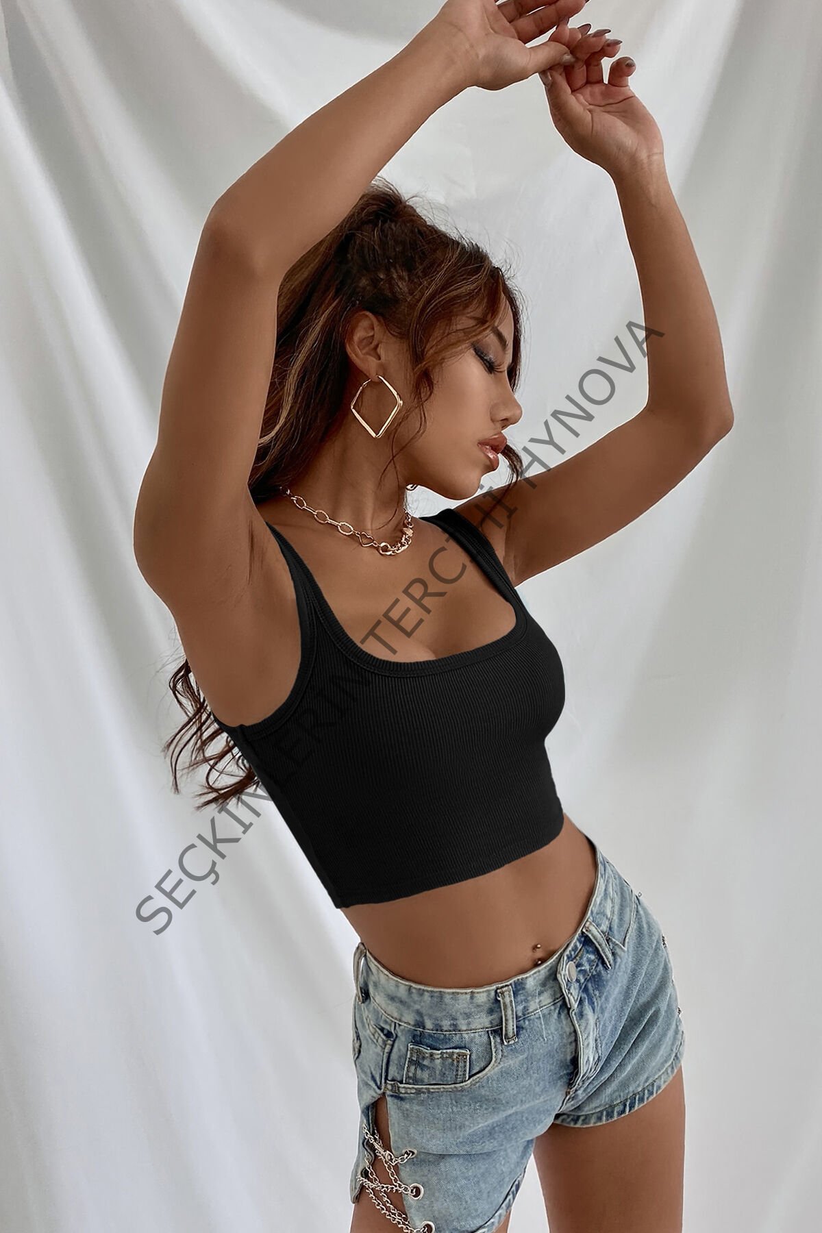 Kadın Siyah Kalın Askılı Crop Top Büstiyer – Modern ve Şık Tasarım