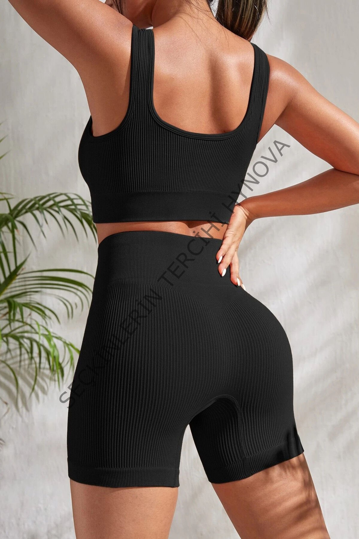 Kadın Siyah Kalın Askılı Yüksek Bel Şortlu Gecelik Takımı – Modern, Konforlu ve Günlük Kombinlere Uygun
