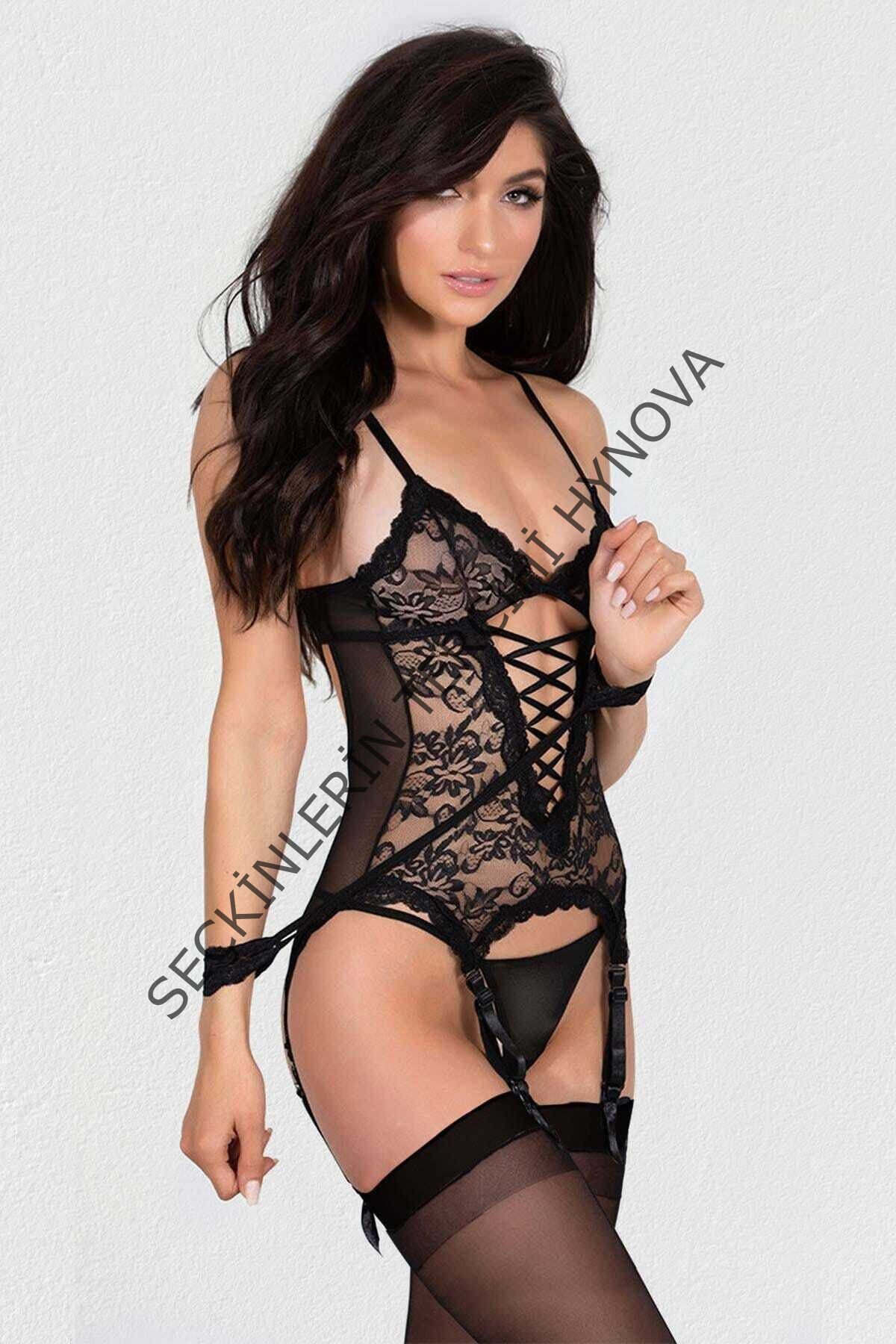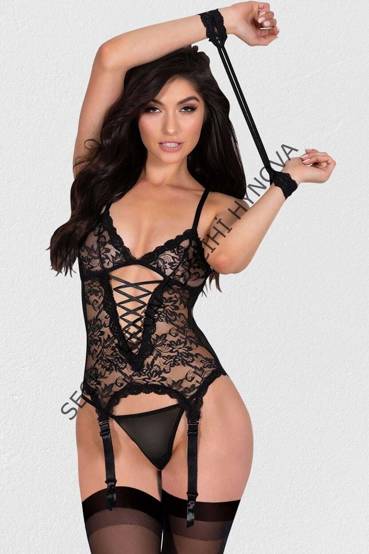 Kadın Siyah Kelepçeli Dantel Jartiyer Takım – Modern, Konforlu ve Günlük Kombinlere Uygun