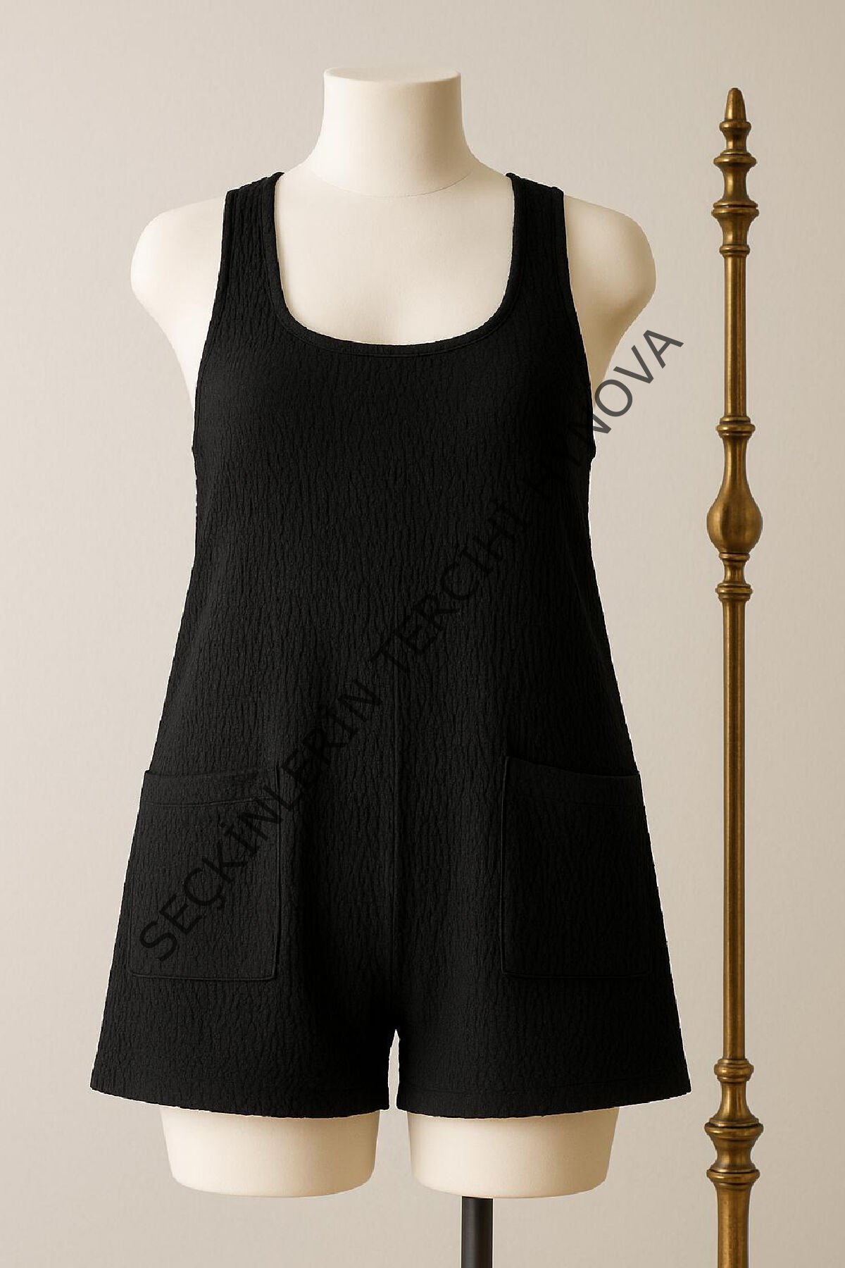 Kadın Siyah Mini Cepli Tulum Plaj Elbisesi, modern tasarımı ve rahat kalıbıyla öne çıkan bir üründür. Günlük kullanım ve özel günler için uygundur.