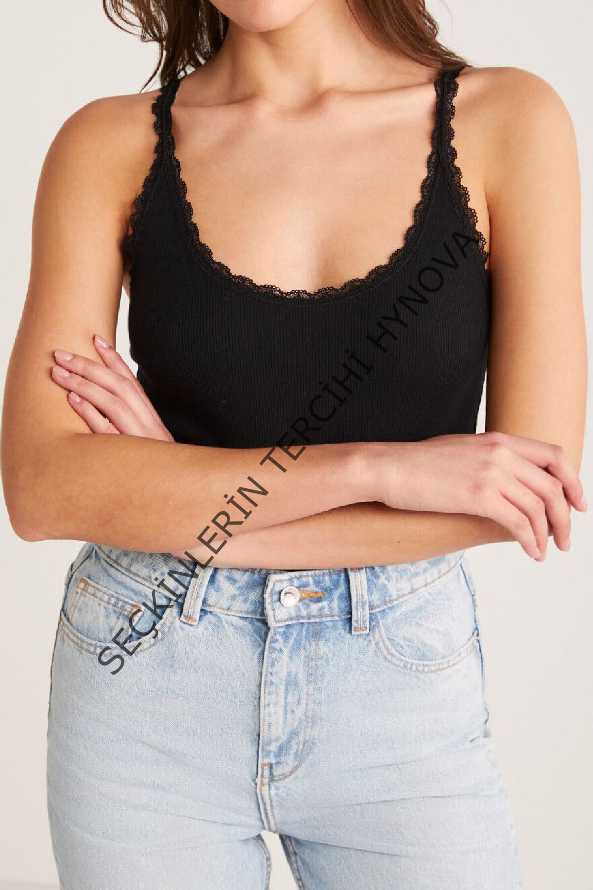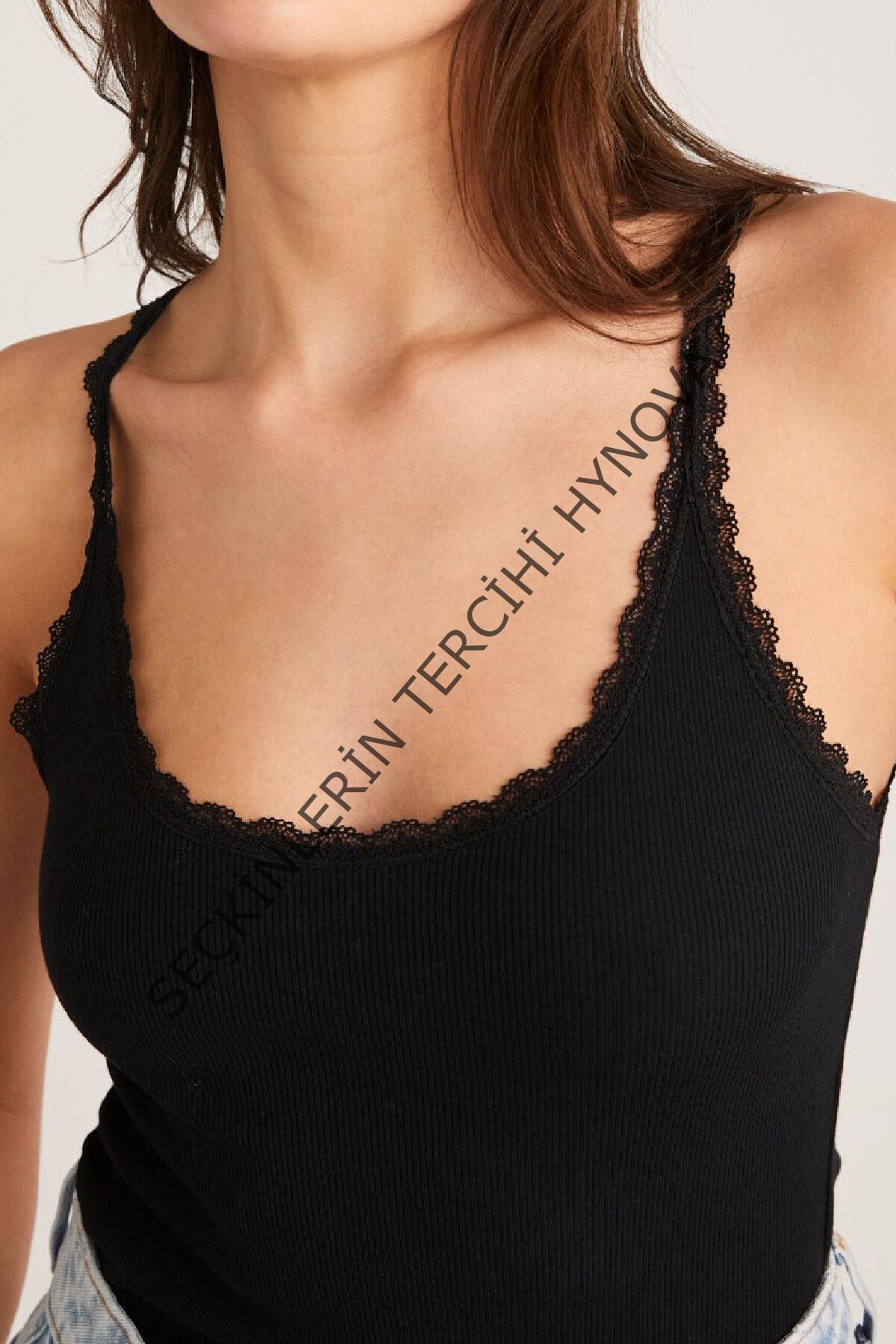 Kadın Siyah Normal Kalıp Dantel Detalı Ince Askılı Oyuk Yaka Atlet – Modern ve Şık Tasarı