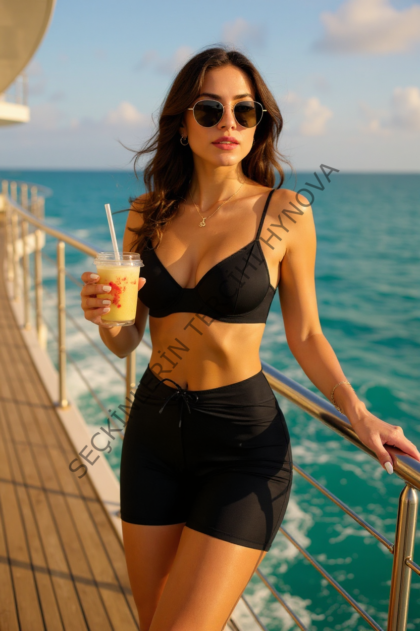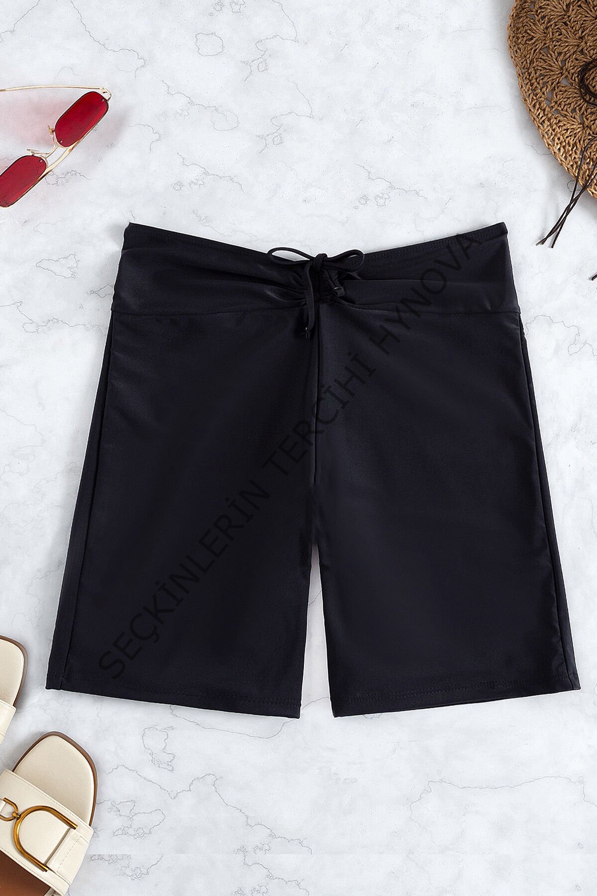 Kadın Siyah Önden Bağcıklı Deniz Şortu – Modern ve Şık Tasarım