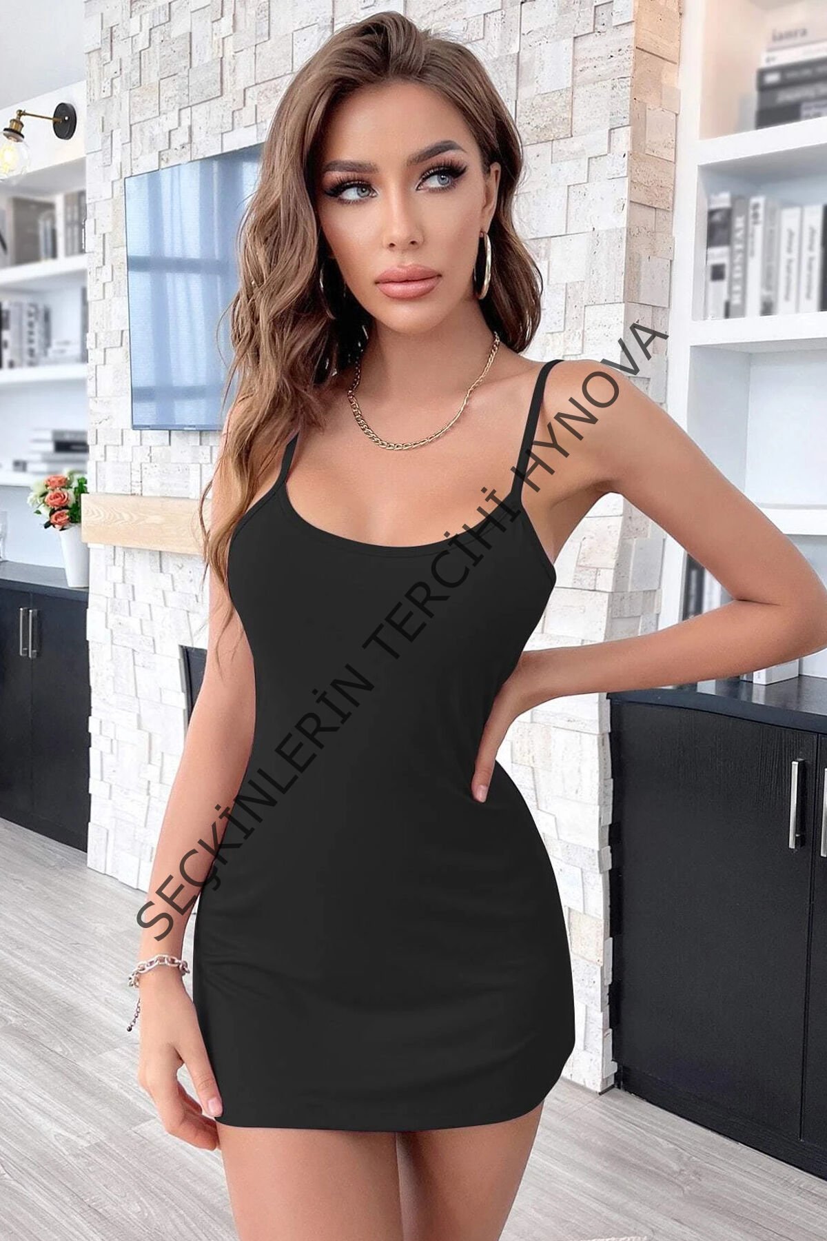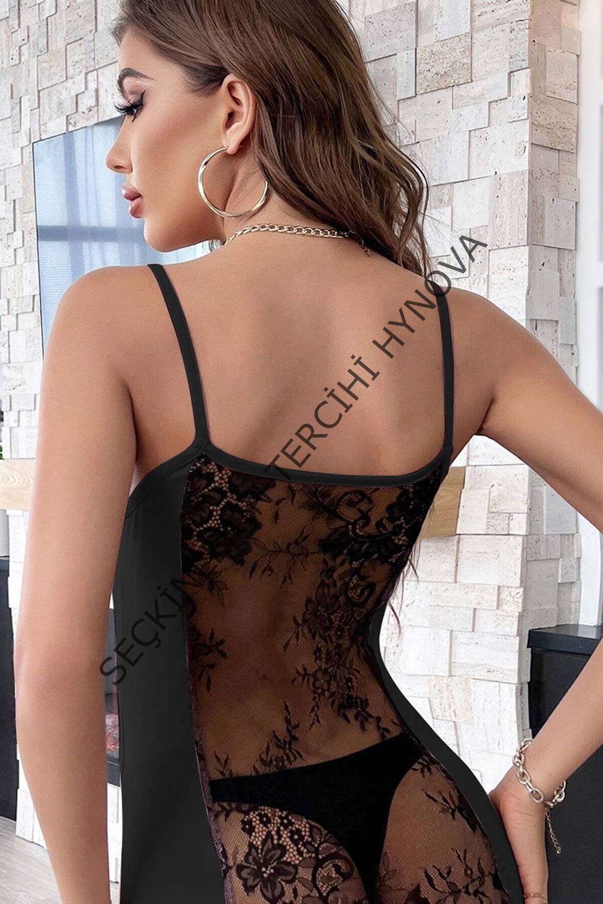 Kadın Siyah Sırt Kısmı Komple Dantelli Mini Gecelik – Modern ve Şık Tasarım
