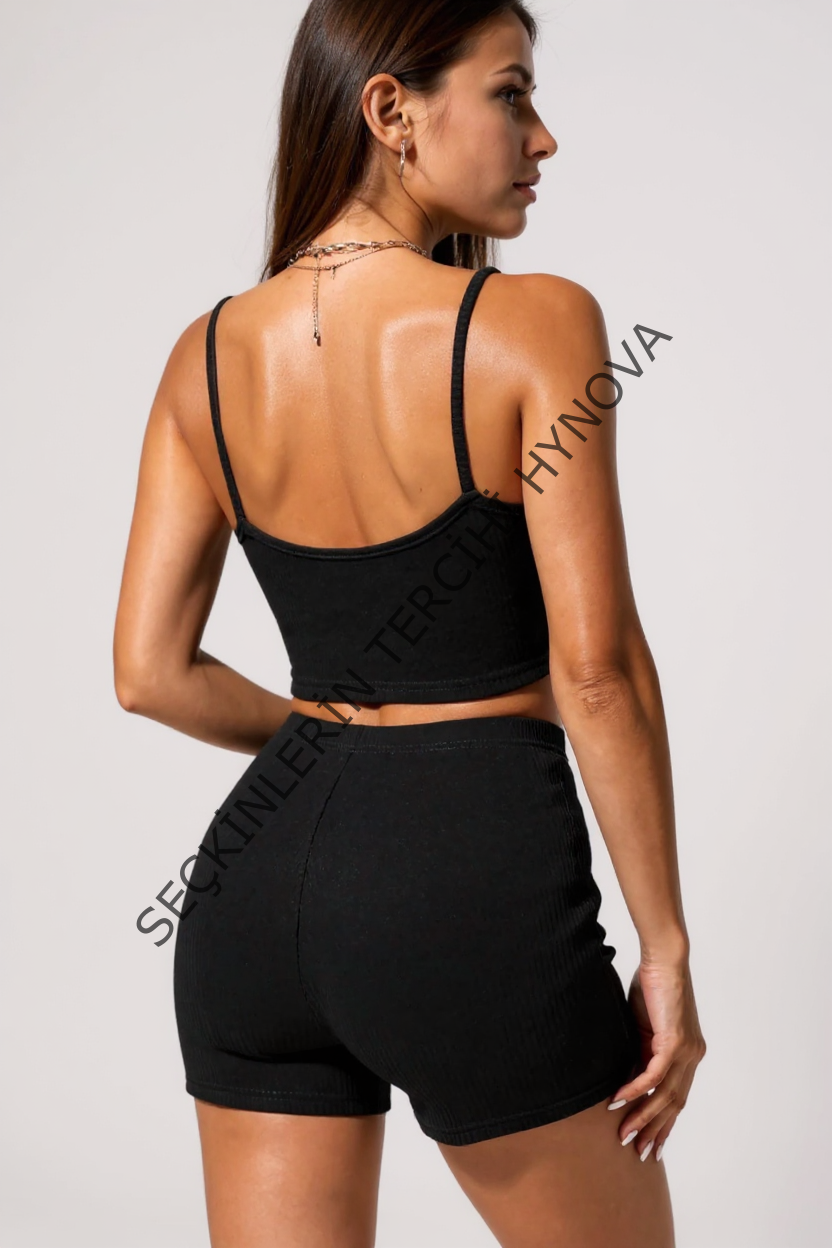 Kadın Siyah Şortlu Kaşkorse Gecelik Takım – Modern, Konforlu ve Günlük Kombinlere Uygun
