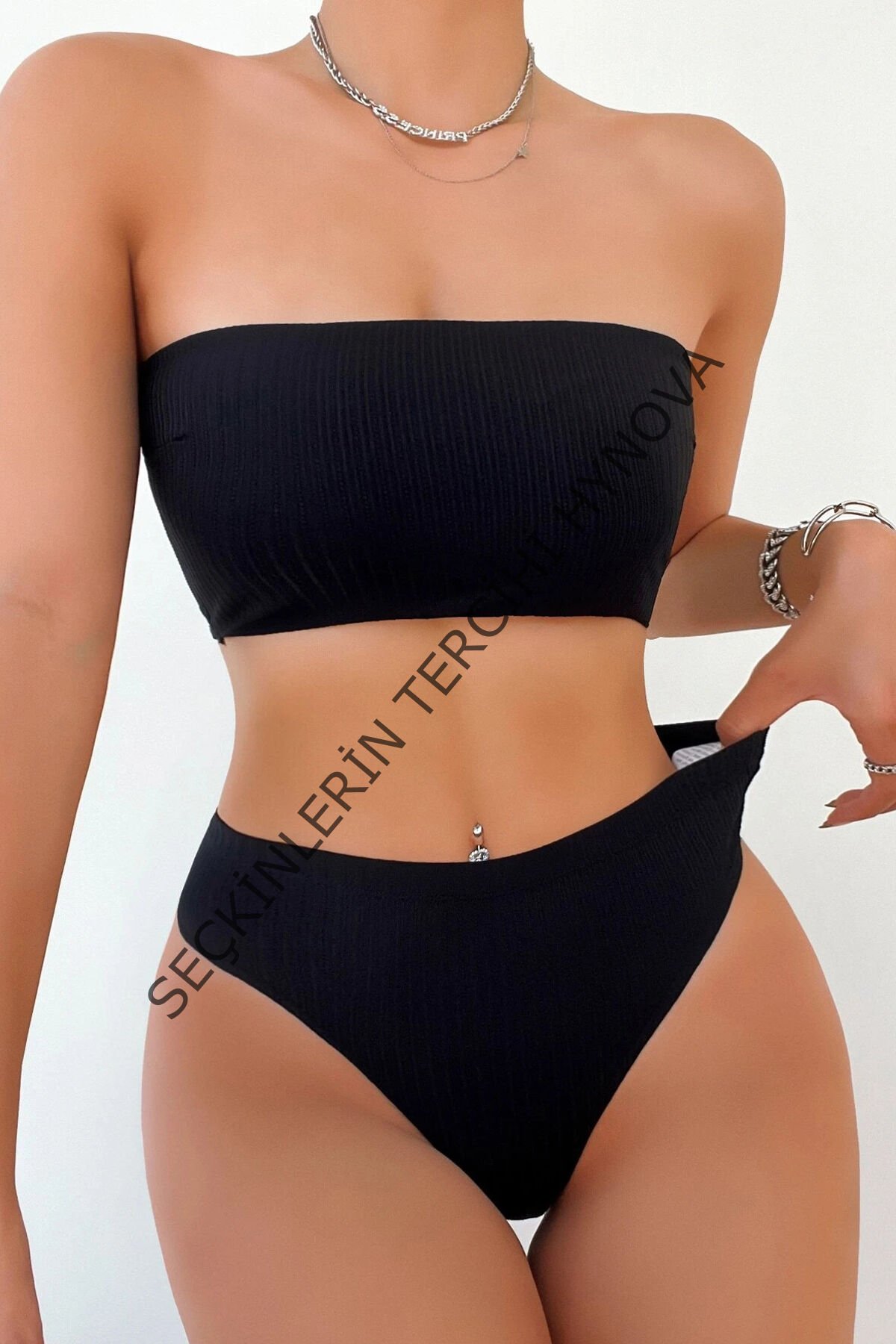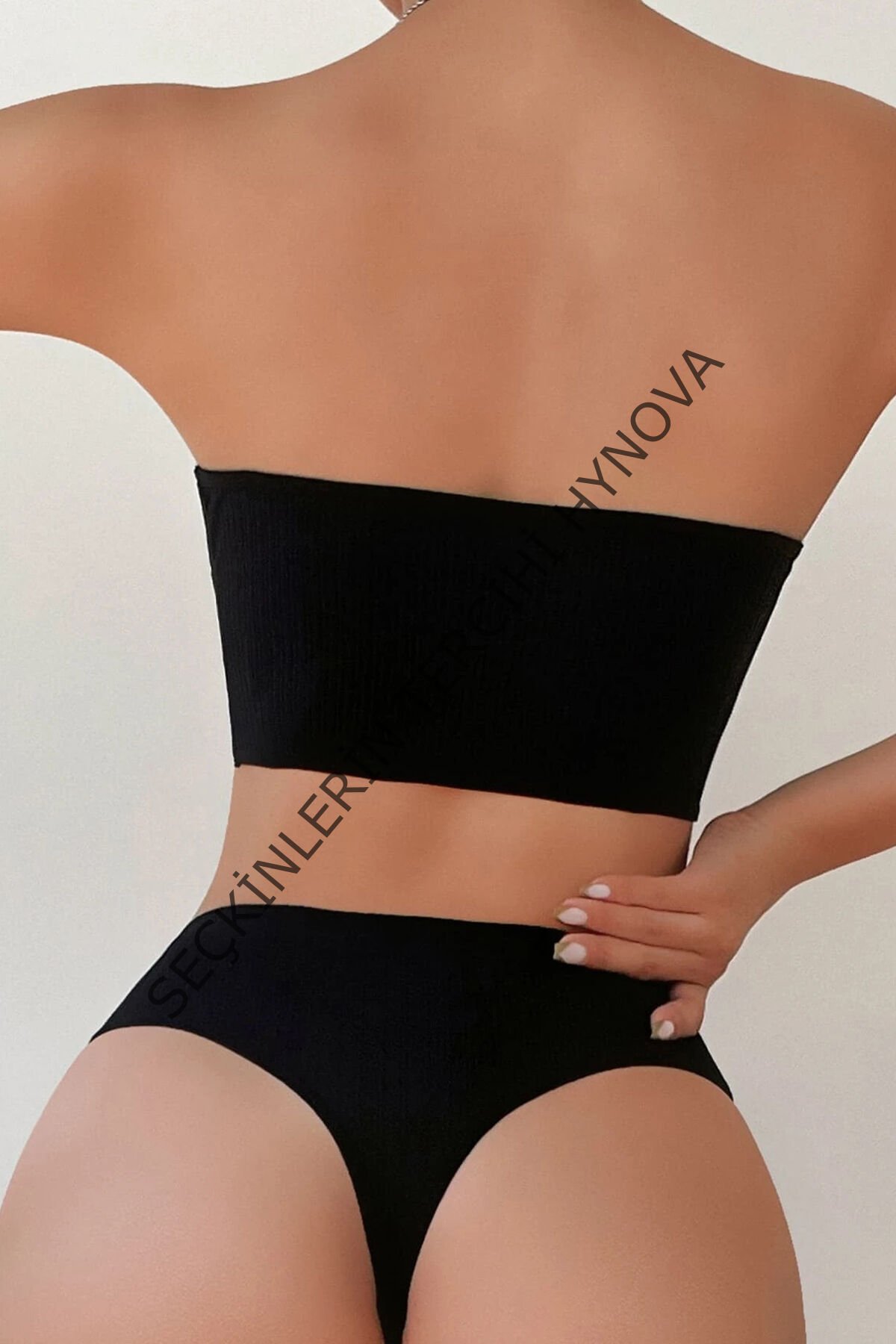 Kadın Siyah Straplez Sütyen ve Yüksek Bel Külot Takım – Modern, Konforlu ve Günlük Kombinlere Uygun